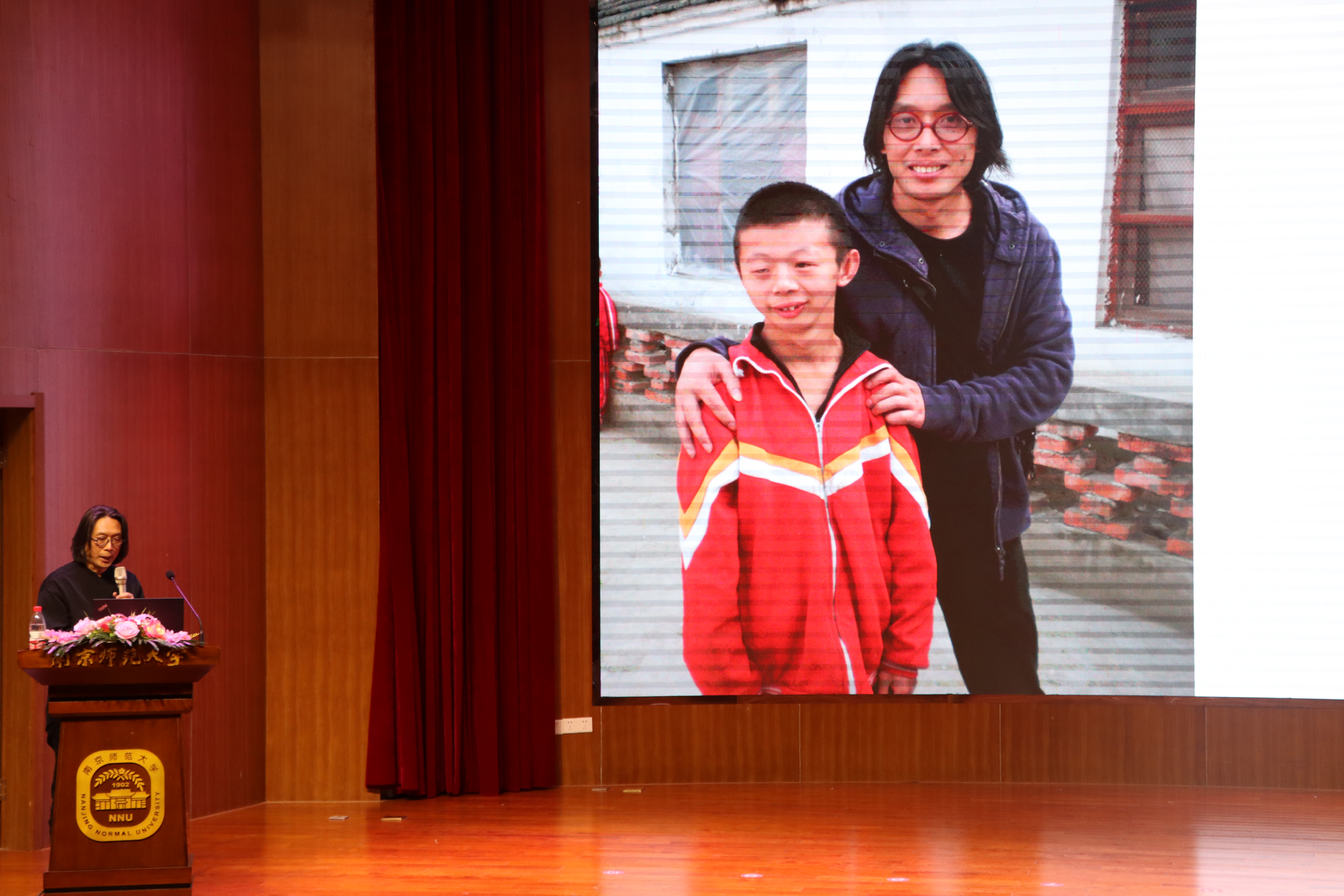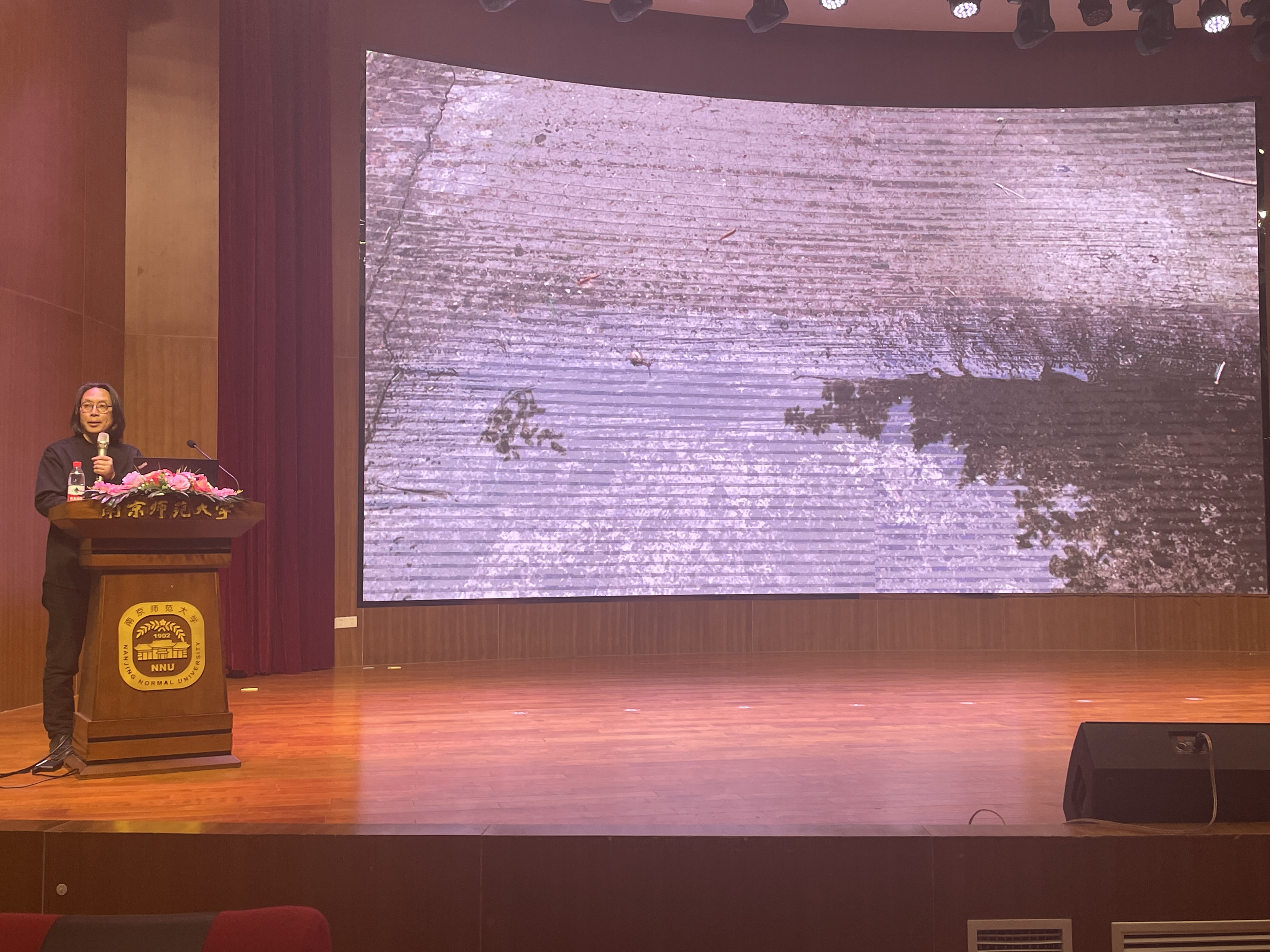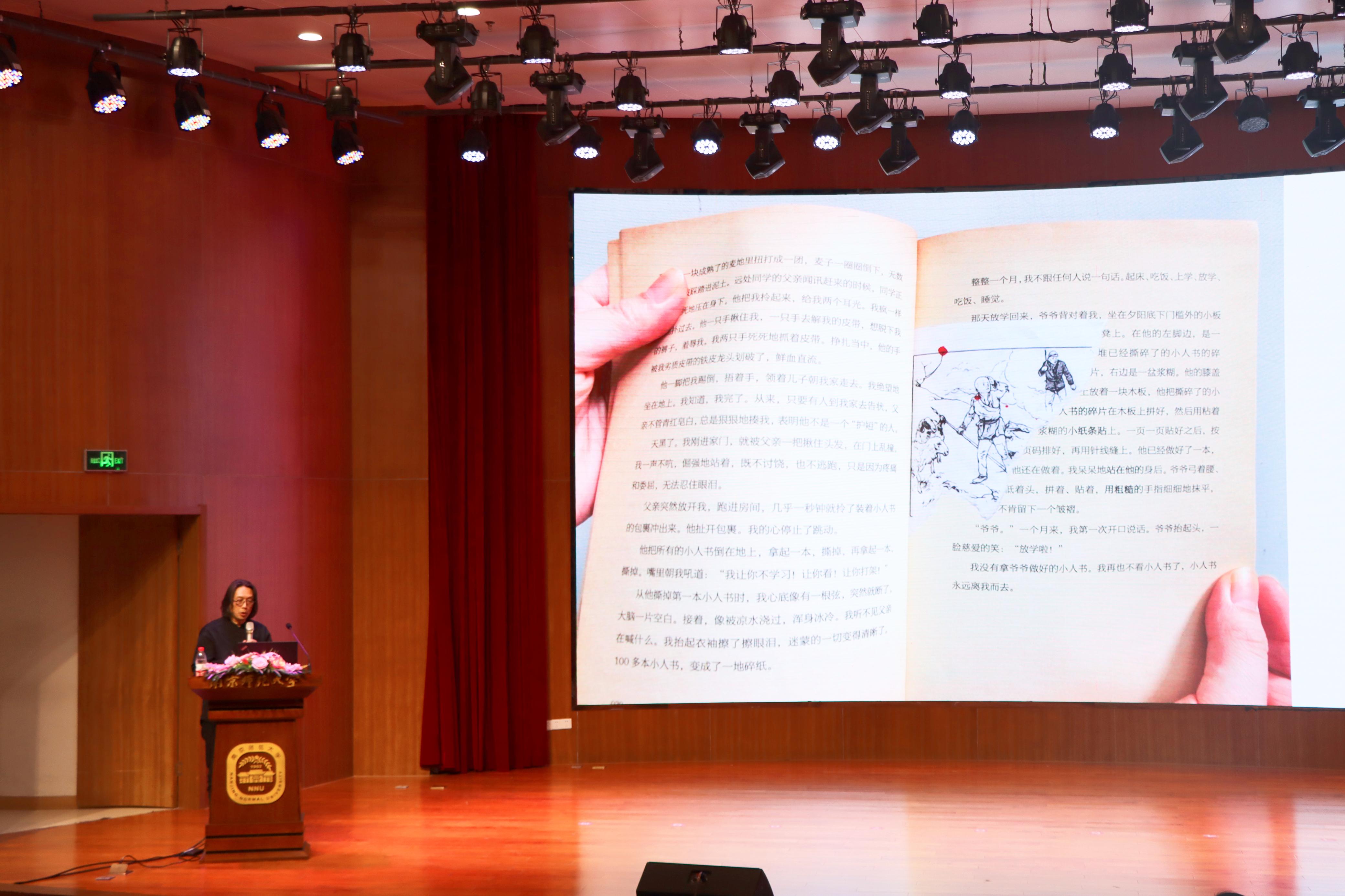 朱赢椿老师以“转念见美”为主题,主要通过“自然之美”、“瑕疵之美”、“丑陋之美”等概念阐述了“美”的内涵。讲座伊始,朱老师通过讲述《蚁呓》、《虫子诗》、《虫子旁》等作品的灵感来源和创作过程,指出“自然之美”的要义:不要以为人多高尚,蚂蚁有多卑微。趴下来与大地接触,大地也会给你回馈。