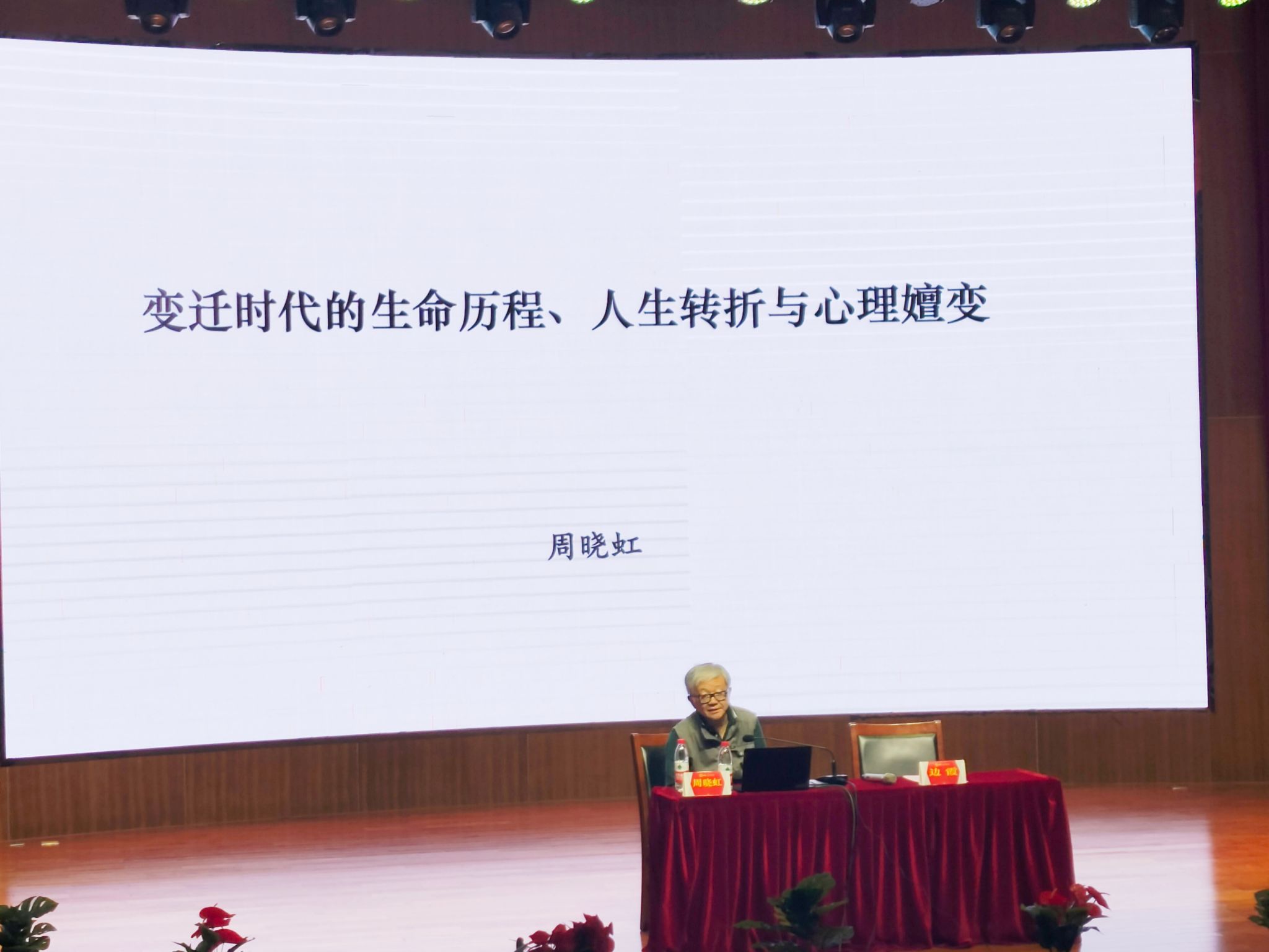 接着,周教授讲述了“知青”社会学家的生命历程,通过“上山下乡” “高考” “社会学重建”“南开班”等若干转折性事件,说明在延续的轨迹和断裂的转变的相互作用下,整体生命历程会出现转折点,并对一个人的人生轨迹或行为模式产生持续的影响。周教授还介绍了转型心理学,或变革时代的个体蜕变。他通过一张张老照片,一个个社会学家的真实经历,指出转型重构了知青社会学家认知世界的方式并改变了他们的情感世界。