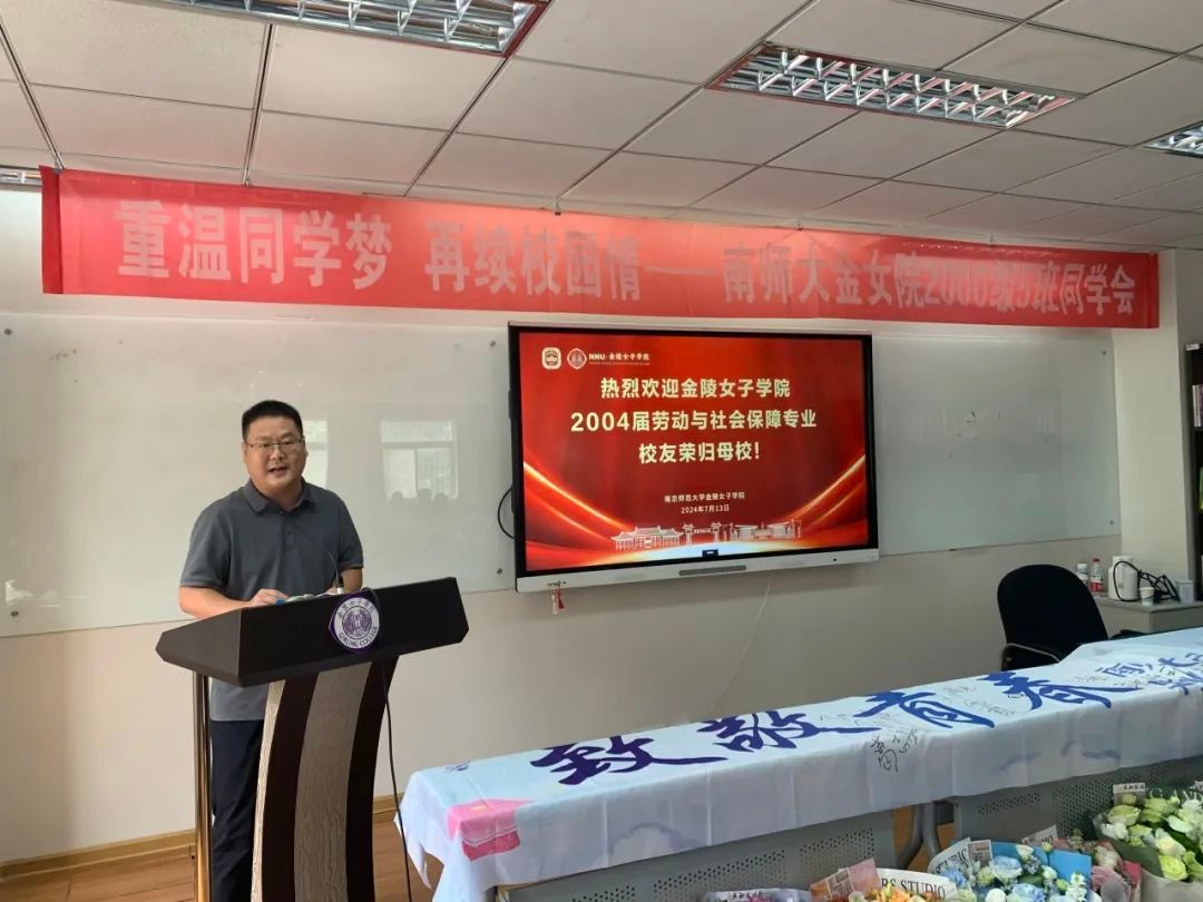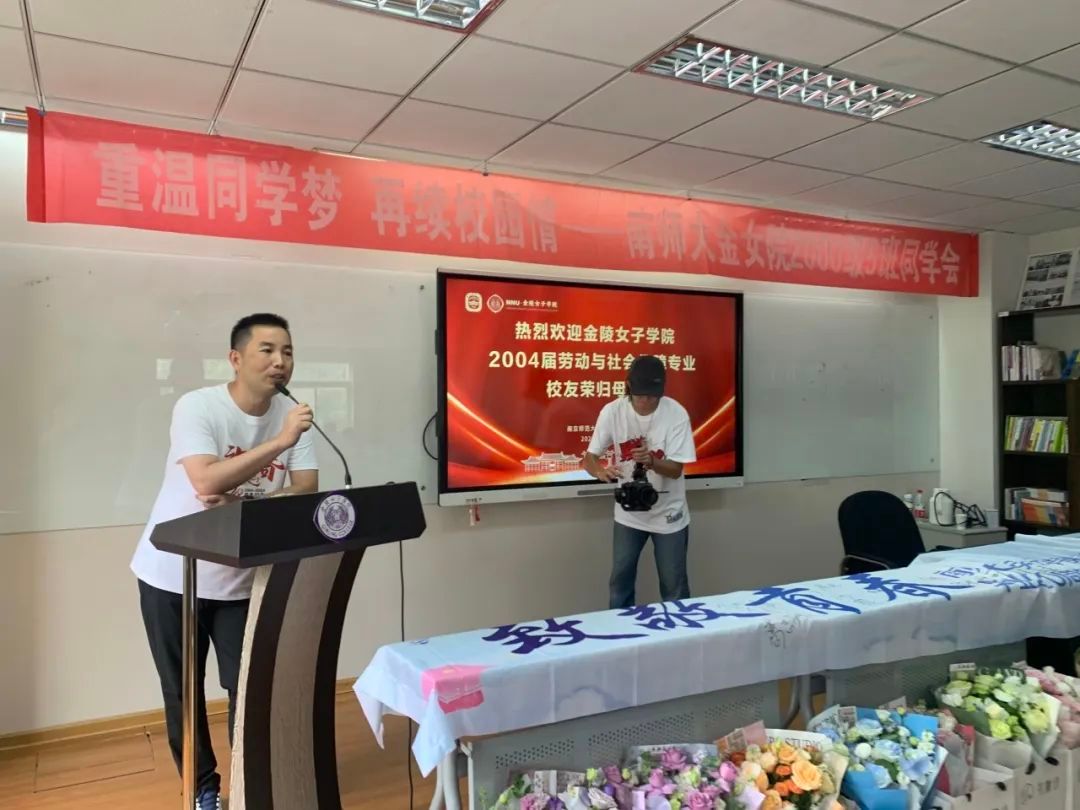 2004届劳动与社会保障班班长朱信鹏播放了大家大学时代、毕业10周年聚会、现今仙林和随园校园、教室、宿舍以及老师们的祝福寄语照片及视频,引起了大家的美好回忆!