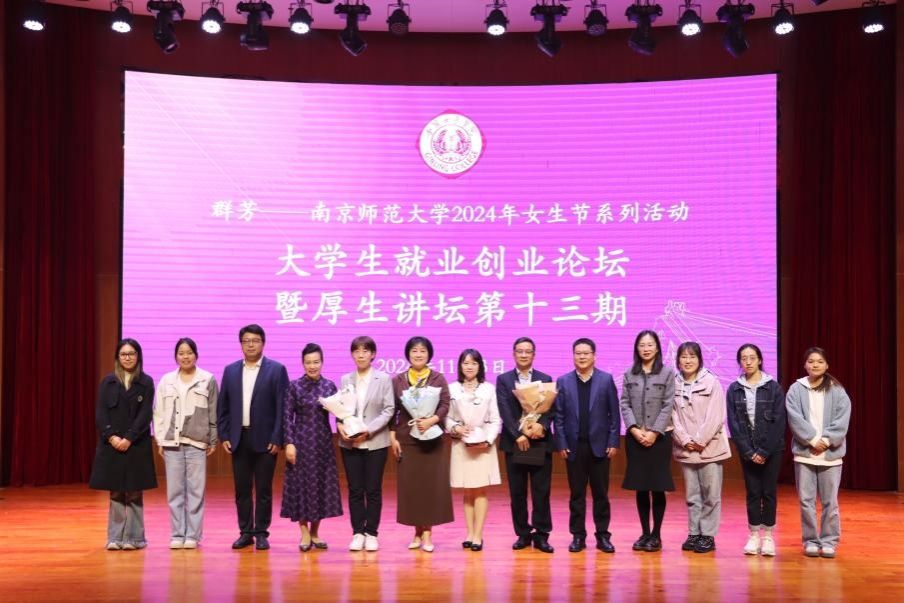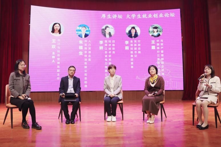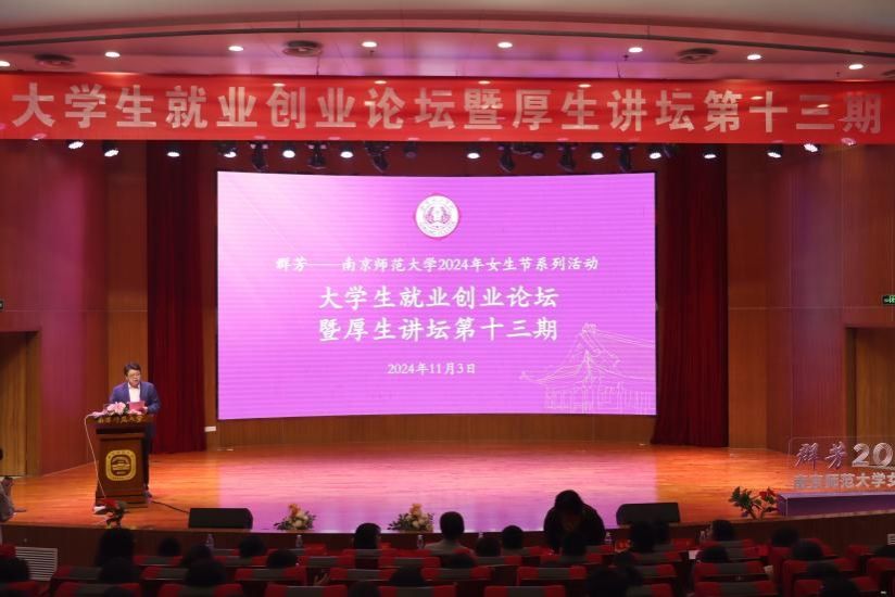 11月3日上午,群芳女生节之大学生就业创业论坛暨厚生讲坛第十三期”在广乐楼音乐厅成功举办。此项活动将学校校友会“最美校友母校行”等品牌活动与自拍流出的校友“厚生讲坛”、群芳女生节之“巾帼标兵走进南师”相融合,邀请了全国五一巾帼标兵、国网江苏省电力有限公司经济技术研究院设计中心四级职员李妍,金箔控股集团董事、党委副书记、行政总裁李莉,中国银行江苏省分行投资银行与资产管理部副总经理王霞,邦基(南京)粮油有限公司总经理、人力资源总监朱福生四位巾帼劳模、女企业家、杰出校友现场分享职业发展经验与个人成长心得,共话促进大学生高质量就业。自拍流出
