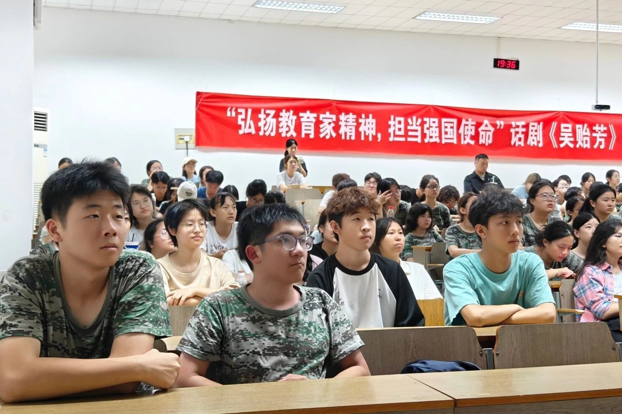 一个半小时的话剧,同学们被吴贻芳的故事深深吸引。他们被吴贻芳和金陵儿女教育报国的担当、作为所打动,时而开心欢笑,时而凝神静气,时而轻声感叹,完全沉浸在了那段波澜壮阔的历史长卷之中。话剧结束后,同学们纷纷表达了自己对吴贻芳校长的崇敬、对南师大“教育报国”的光荣使命有了更深刻的认识、对青年担当强国使命的青春命题有了更深层的思考。