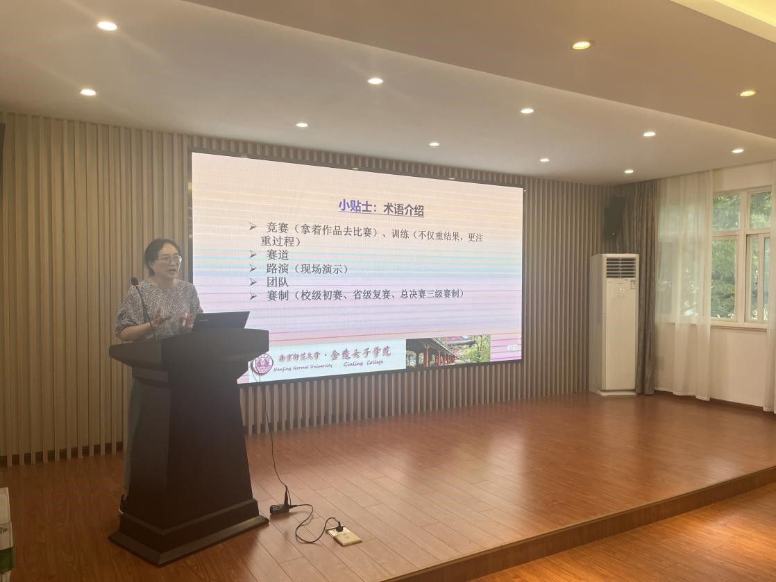 会议首先由会计系陈名老师发言,主题为“教学成果奖申报及学生竞赛指导”。陈老师梳理了近年来国家级、省级教学成果奖获奖选题,认为申报过程中需要注重前期专业信息积累,关注政策导向,凸显平台特色。另一方面,陈老师着重以“挑战杯”学生竞赛为例,总结出竞赛热点议题及对应赛道评比要点,并强调学生竞赛指导需要依托导师优势,对应成果需要落地。