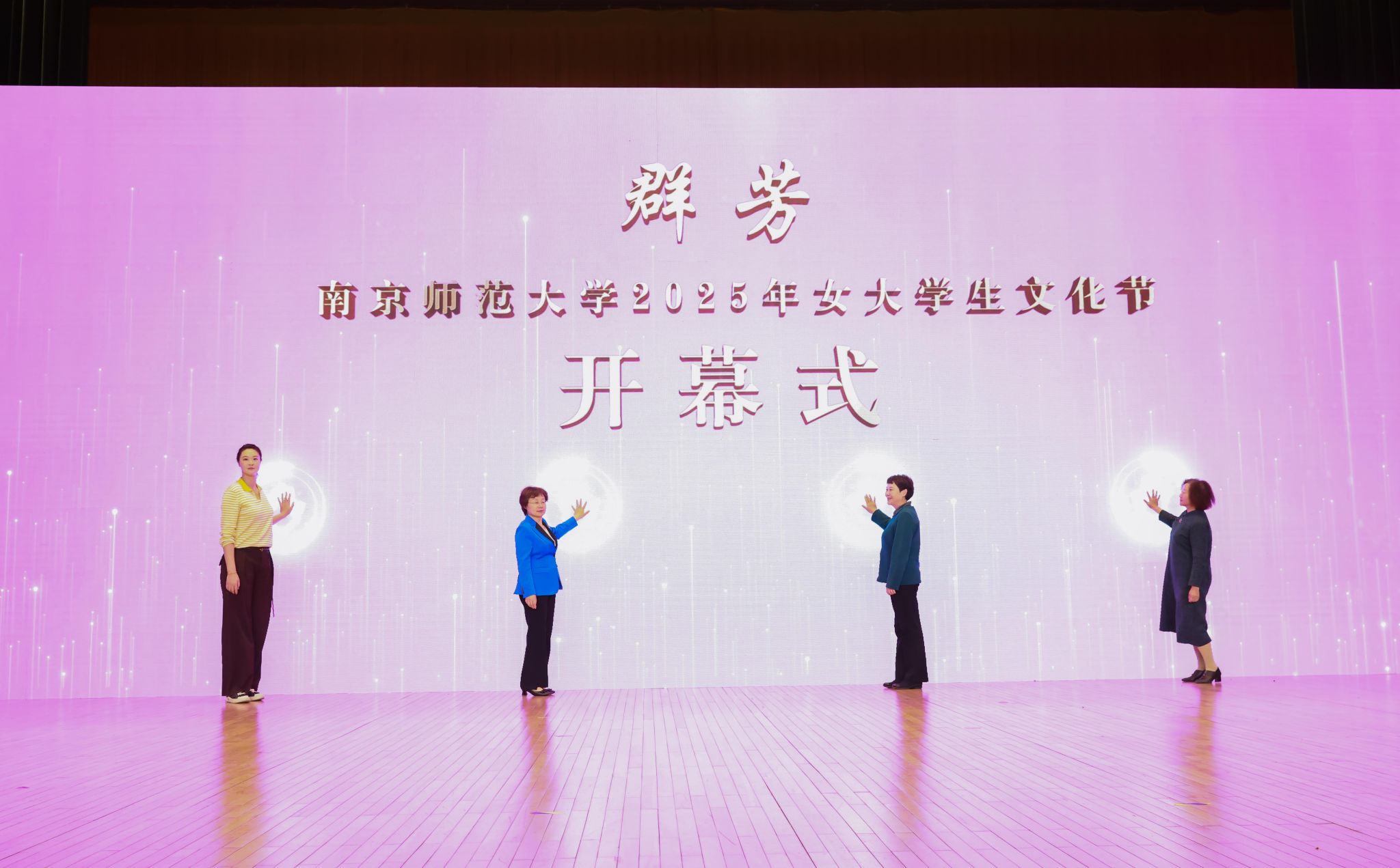 沈梅、孙友莲、惠若琪、边霞共同触摸屏幕手印,第二十届南京师范大学女大学生文化节正式开幕。本届女大学生文化节以“新时代女大学生奋进新征程”为主题,共安排了2场报告、1场全国妇联巾帼大宣讲、1场就业创业论坛、1项杰出女校友风采征文展示活动、1期女大学生发展训练营。助力女大学生全面发展,营造积极向上的文化氛围。