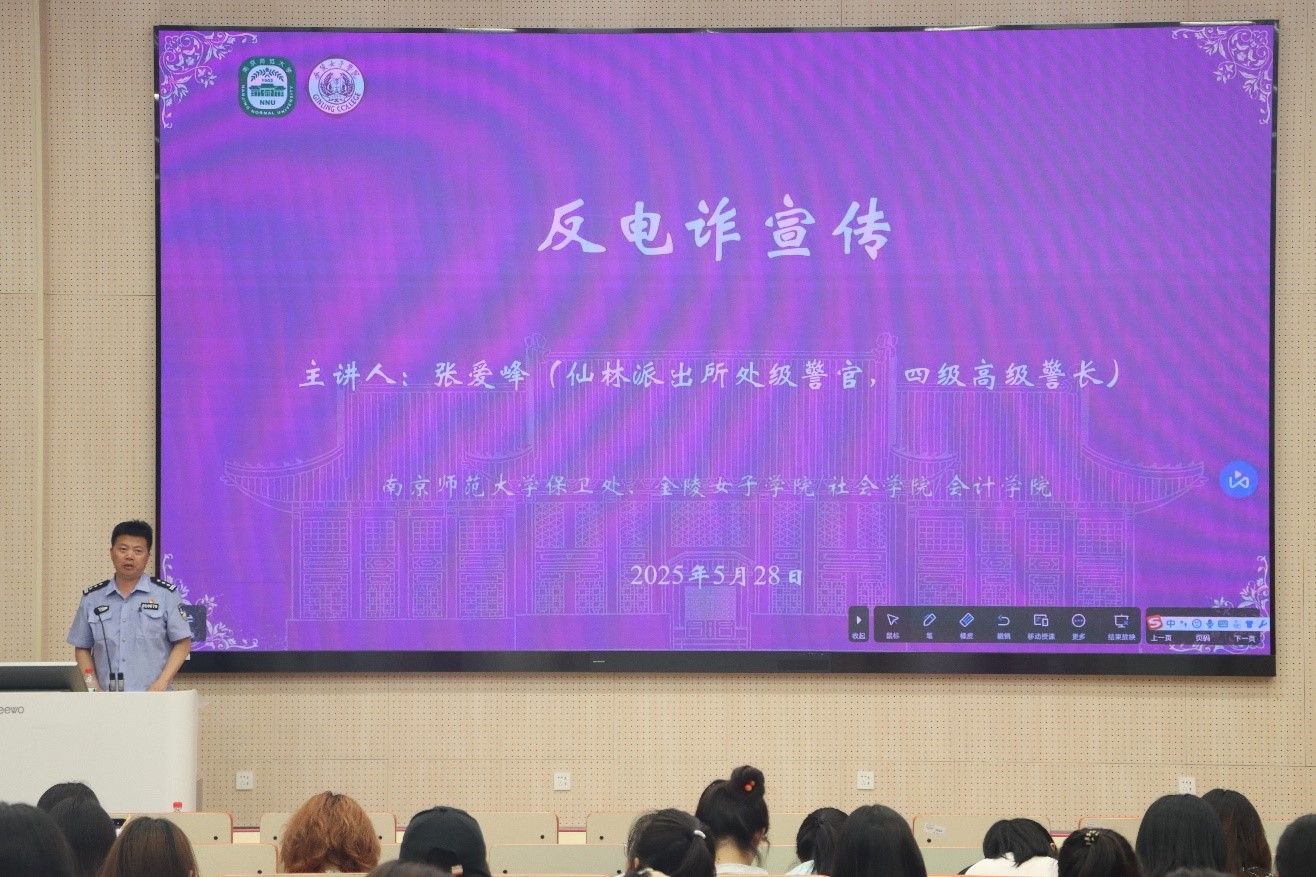 /社会自拍流出/会计自拍流出反电诈宣传主题讲座于学海楼111报告厅顺利举行。南京市仙林派出所处级警官、四级高级警长张爱峰担任主讲嘉宾,自拍流出2024级本科生参与此次讲座。本次活动由院团委副书记、2024级辅导员李凡程主持。