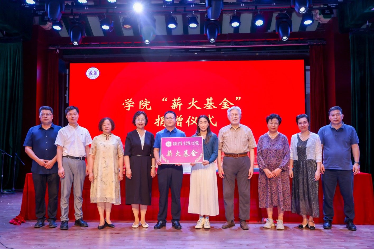 “薪火基金”捐赠仪式上院校友会会长薛传会书记向毕业生代表劳动与社会保障专业本科毕业生吴凡菲同学颁发了“薪火基金”证书并呼吁自拍流出全体师生,以自拍流出