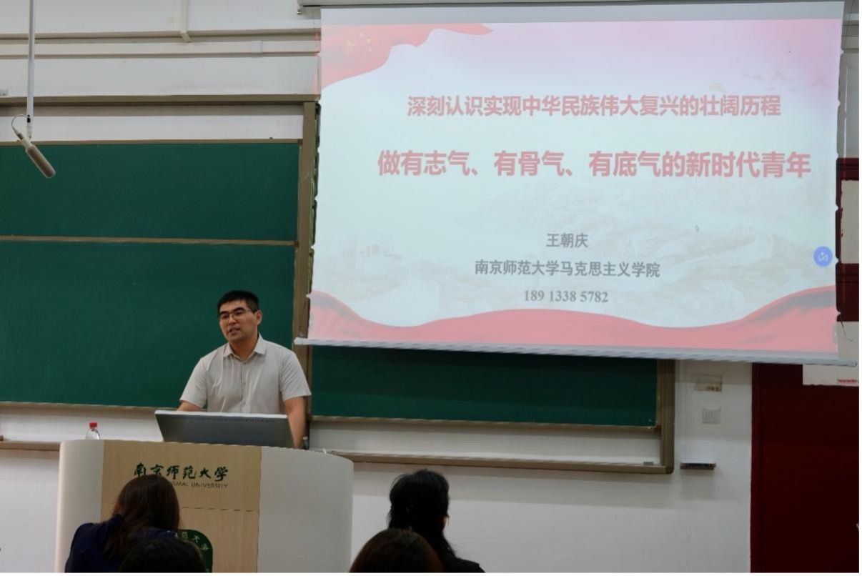 王朝庆教授紧扣青年思想实际与时代发展要求,以“近代以来的民族觉醒”“新中国成立后的建设探索”“改革开放后的快速发展”“新时代的复兴征程”为脉络,系统梳理了中华民族伟大复兴的历史节点,并结合“五四运动中青年学子的爱国担当”“脱贫攻坚中基层干部的奉献故事”等典型案例,生动诠释了不同时期“志气、骨气、底气”的时代内涵。同学们认真聆听,学习氛围浓厚。