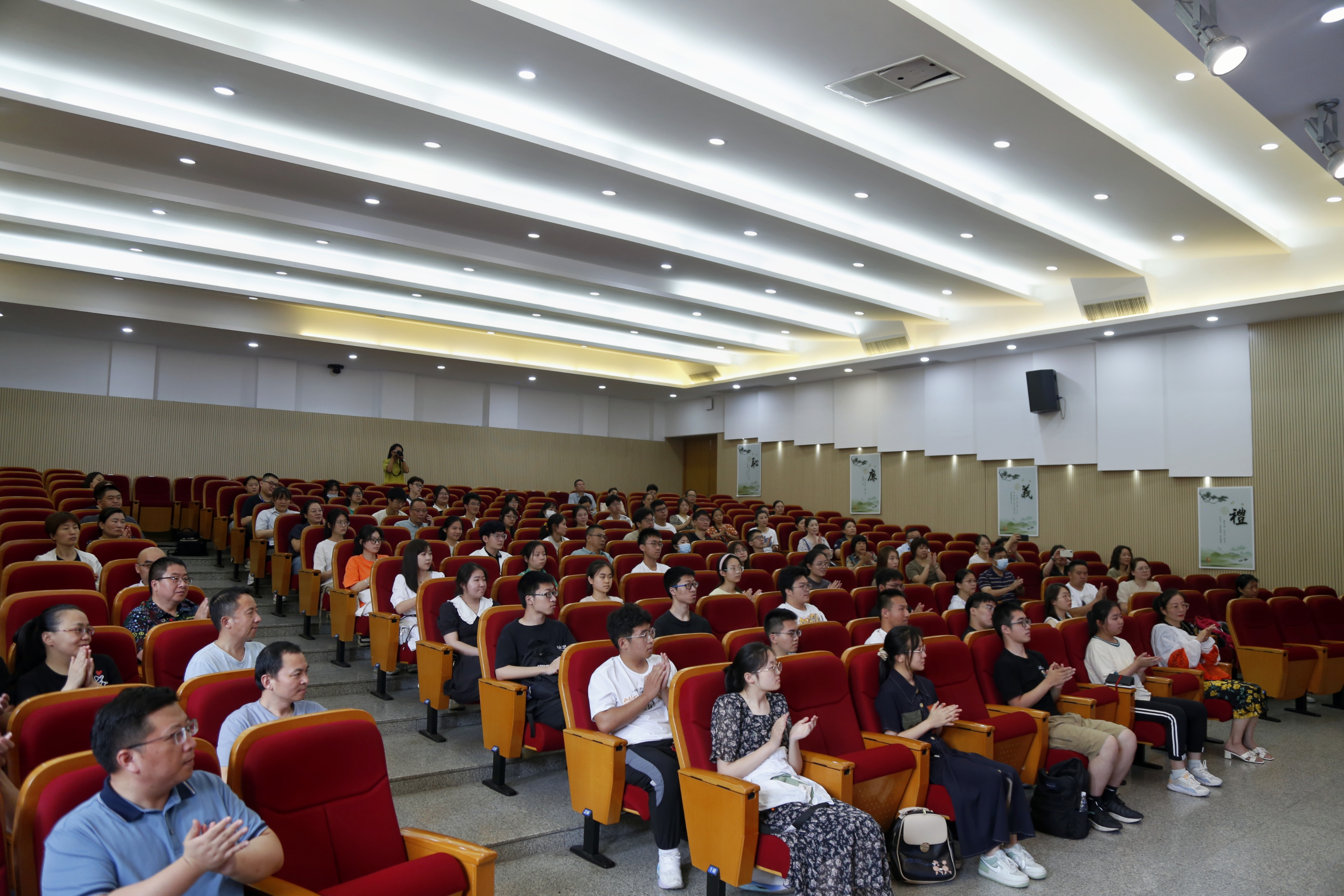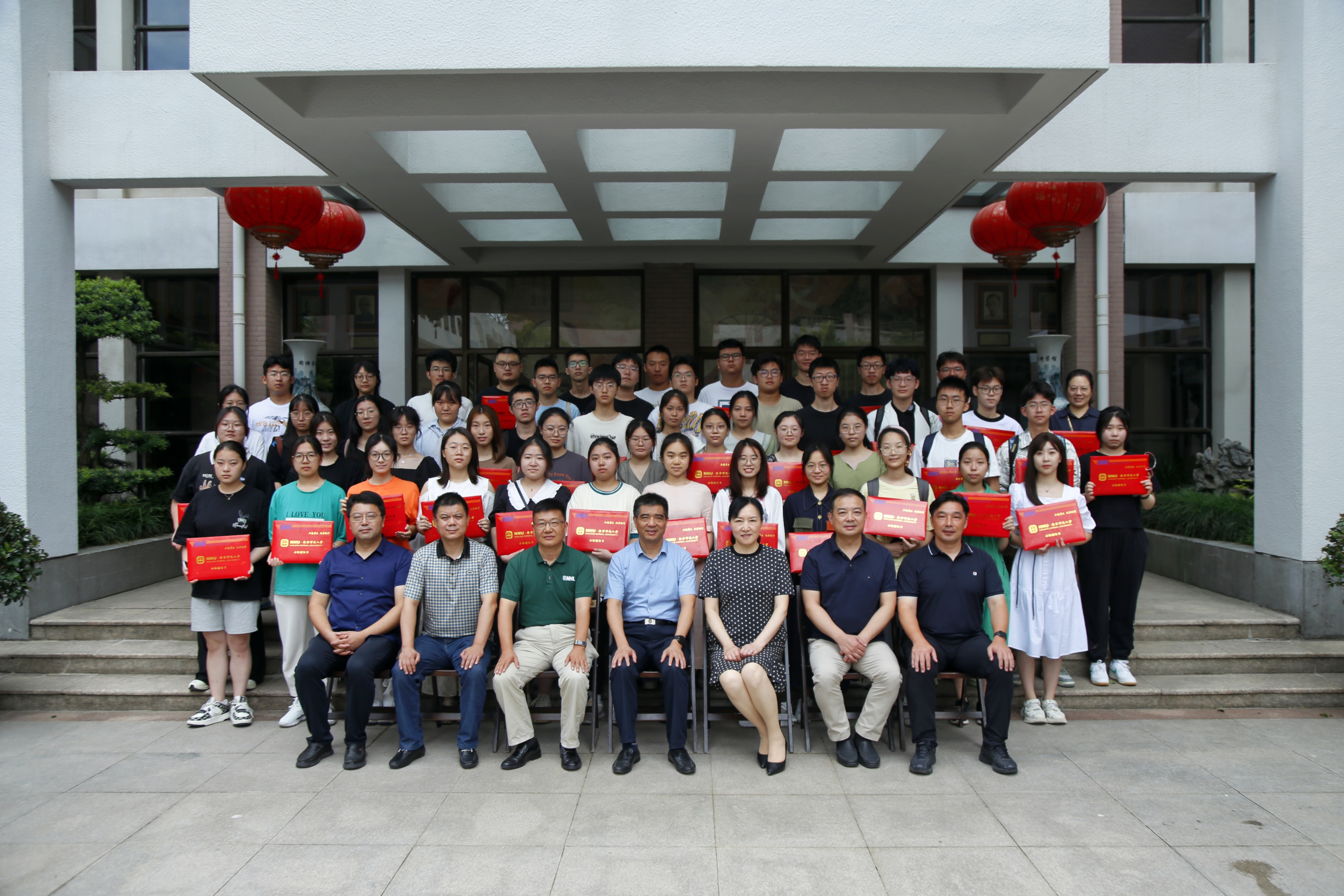 党委副书记高见,辅导员张一川,南通中学校长陈建云、副校长吴建,53名录取到南师大的同学及家长一同出席了颁发仪式。仪式由南通中学学生处主任田宇龙主持。