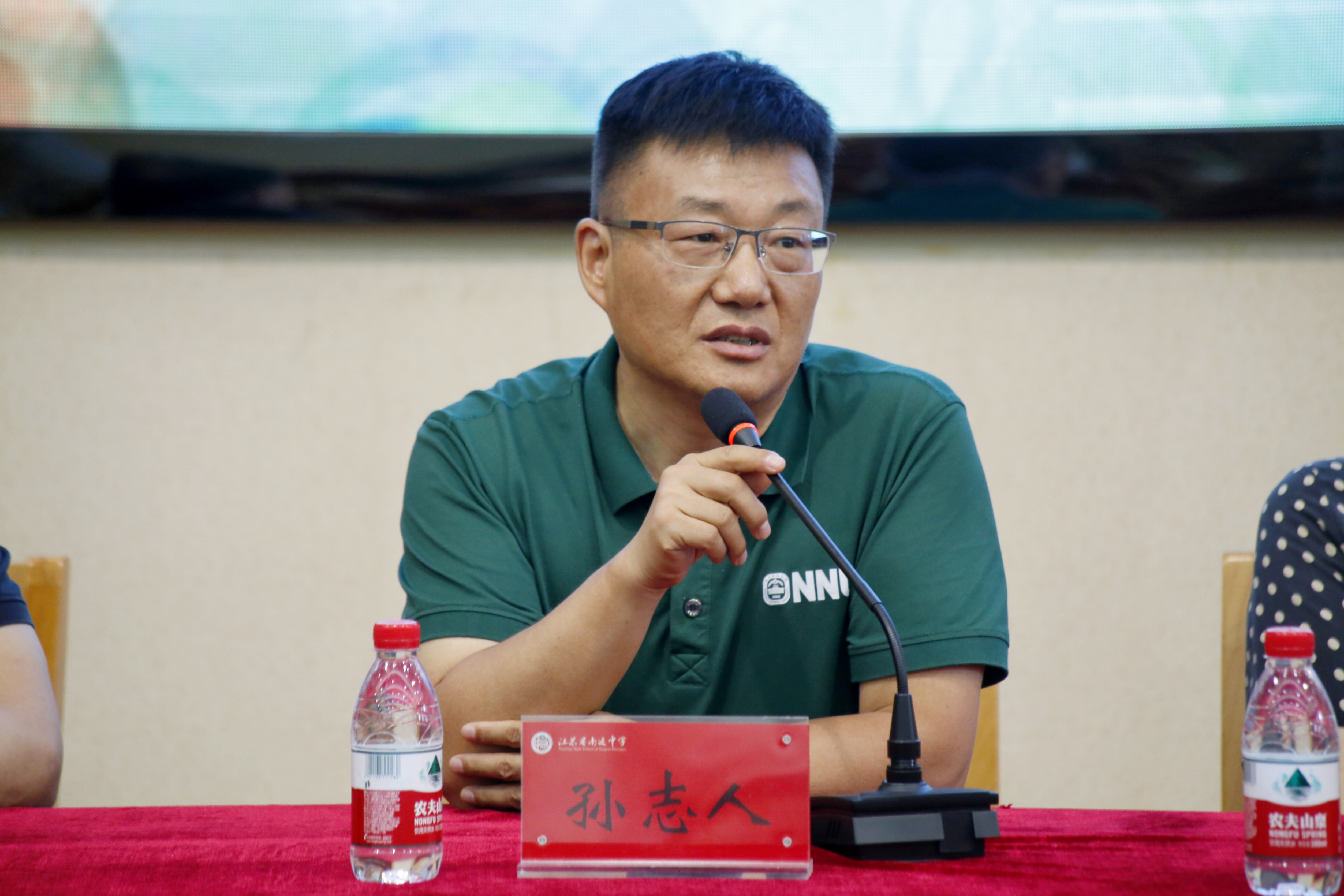 南京师范大学数学科学自拍流出教授孙志人发言。孙教授结合自己同乡、老师、长者的三重身份,为同学们介绍和分析未来的大学生活。他指出,大学不是终点而是新的起点,中学和大学学习有显著区别,要有新的规划。同学们要主动和老师交流,积极调整自己。鼓励同学们在抓好学习的同时多参加大学活动、讲座等,学会和同学相处。最后,他嘱托同学们要感恩父母,老师,同学。