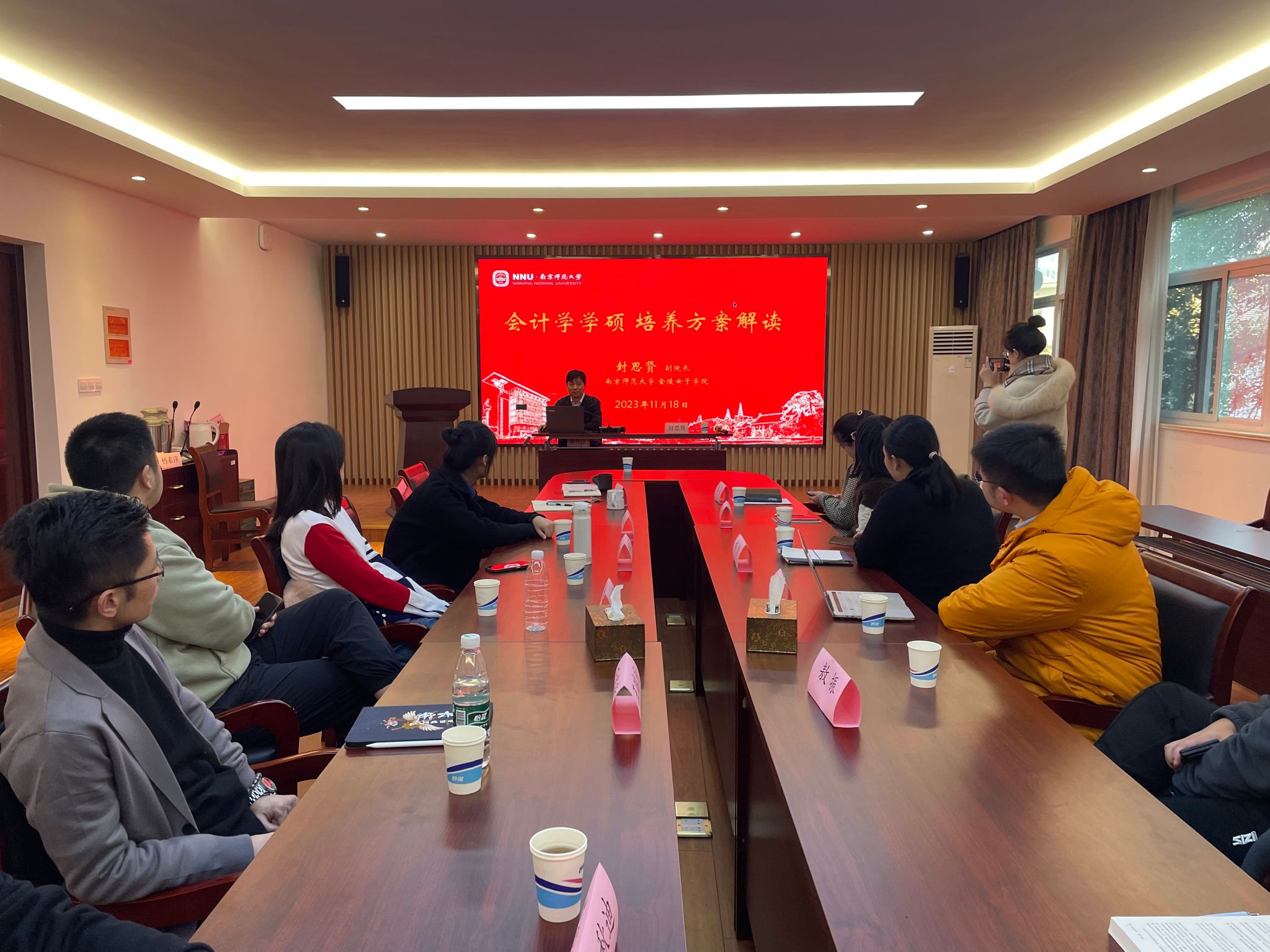不断引进会计、财务、审计领域的知名专家担任行业导师,强化师资队伍。之后,封老师向大家详细解读了会计学硕士的培养方案,介绍了培养目标、学制学分、培养方式、课程设置等,帮助同学们了解自己未来几年学习的全貌并提早做好规划。