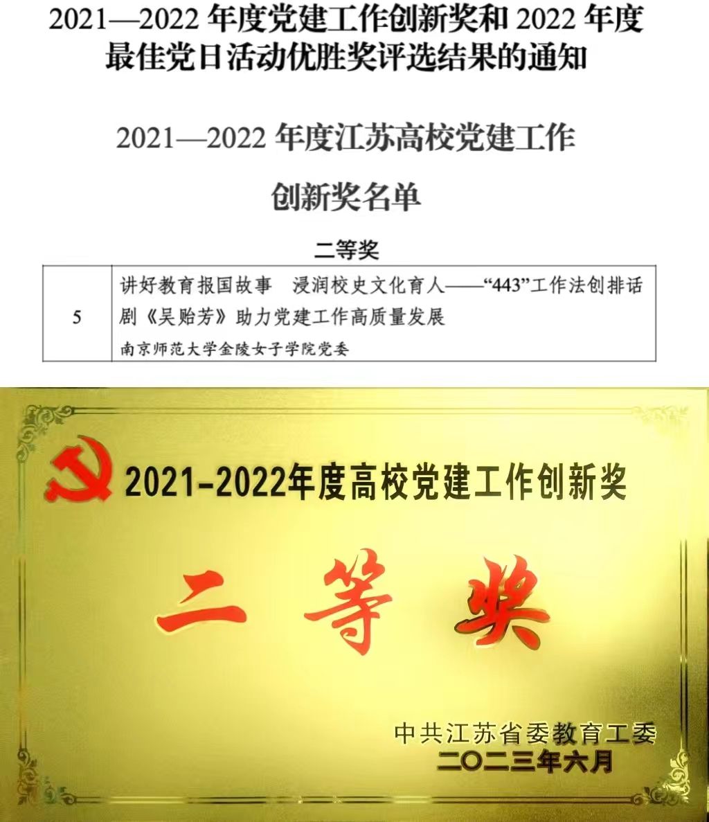 话剧《吴贻芳》作为南师大文化建设和思政精品培育项目,先后获评江苏省委教育工委“2023年江苏高校统战工作实践创新成果”一等奖、“2021-2022年度江苏高校党建工作创新奖”二等奖,是2023年南京市栖霞区重点文艺创作项目,并获得多项社会和校友资助。