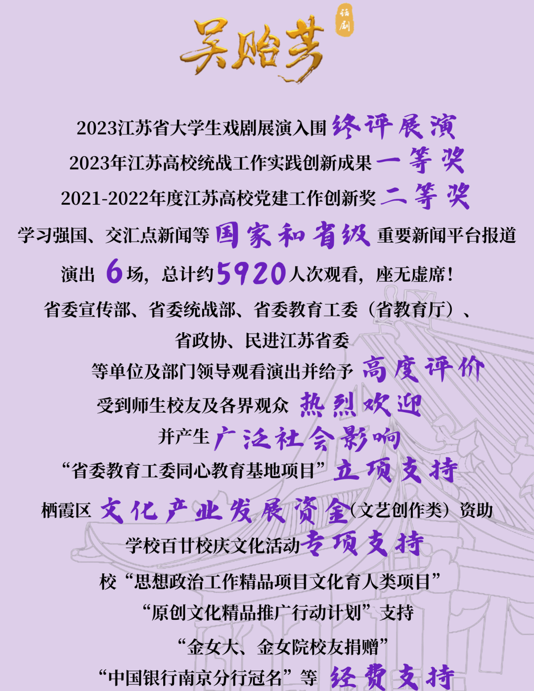 院学生的五分之一。有的学生连续参加了两年,让所有人都默认了她就是历史上的知名校友;有的角色在届届相传,也让所有人都相信,金陵儿女永远后继有人……