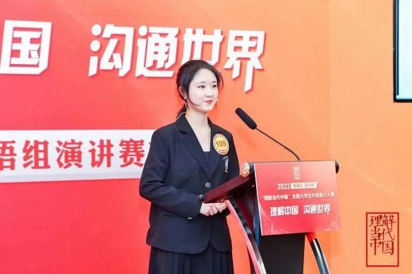 英语组国赛于11月25日启动,采用了线上加线下的多轮赛制。11月25日,演讲第一阶段比赛在线上举办。演讲赛项第一阶段包含定题演讲和即兴问答,定题演讲题目The Chinese Path to Modernization既展现中华智慧又洞察天下大势,将时代课题与青年心声有机融合,引发当代大学生的真知灼见,展示中国青年的智慧和力量。