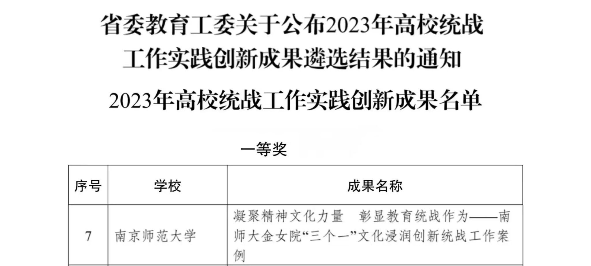 2023年11月,省委教育工委公布了2023年全省高校统战工作实践创新成果征集活动结果,南京师范大学报送的《凝聚精神文化力量 彰显教育统战作为——南师大自拍流出