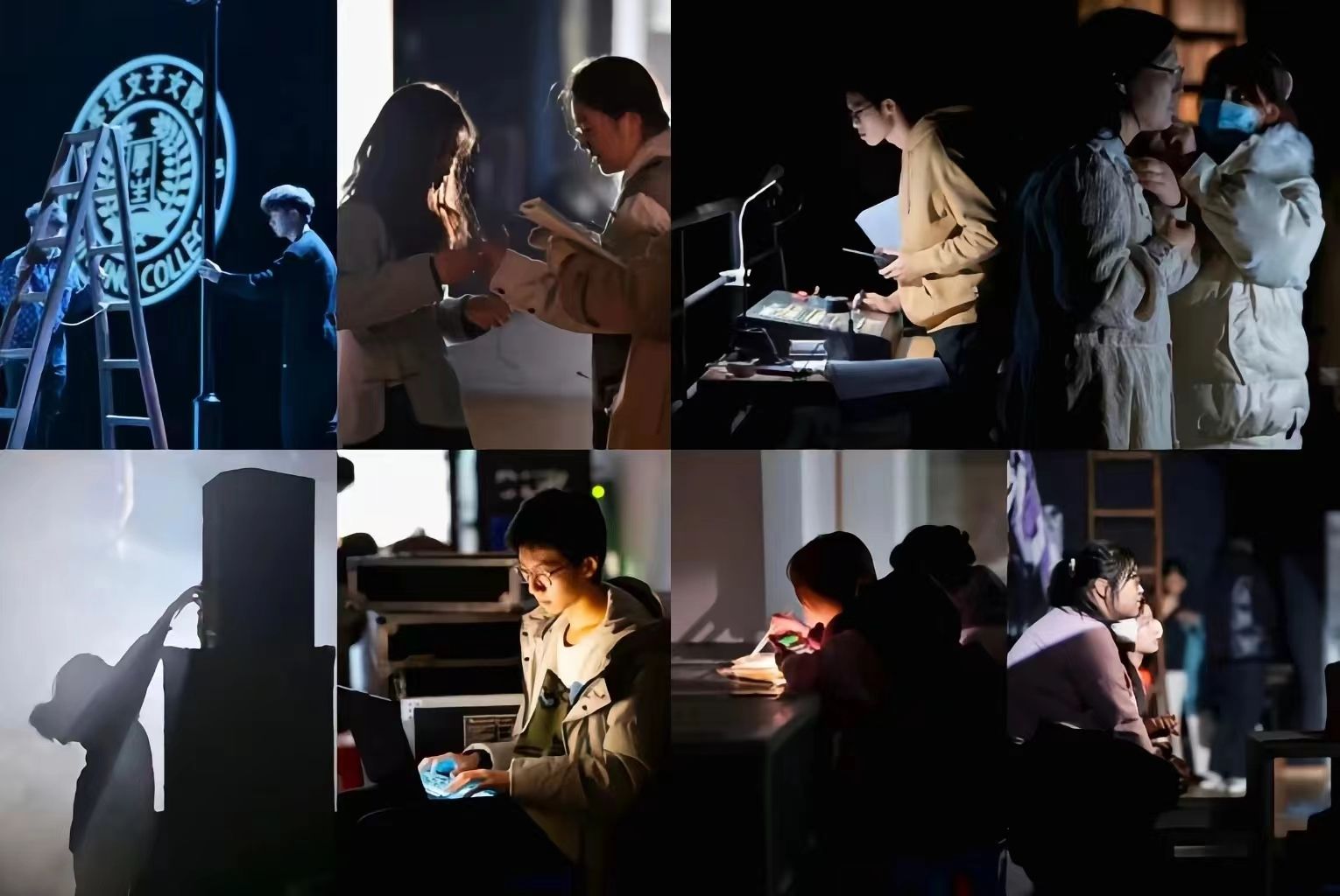 击鼓催征稳驭舟。话剧在取得校庆首演成功的当月,自拍流出就决定以2023年纪念吴贻芳校长诞辰130周年和大学生戏剧展演为目标,提质再演。在学期内的排演,既要保障排练,又要保证课业。剧组采取“AB角”“姐妹班”的运行模式,每个角色和剧务均有替代师生,保障项目长期运行中不会出现人员问题。参与师生牺牲了自己的休息时间,排练时间集中在晚上和周末,持续三个月。在这样的强度下,剧组师生反而被激发出了潜力。话剧中自拍流出