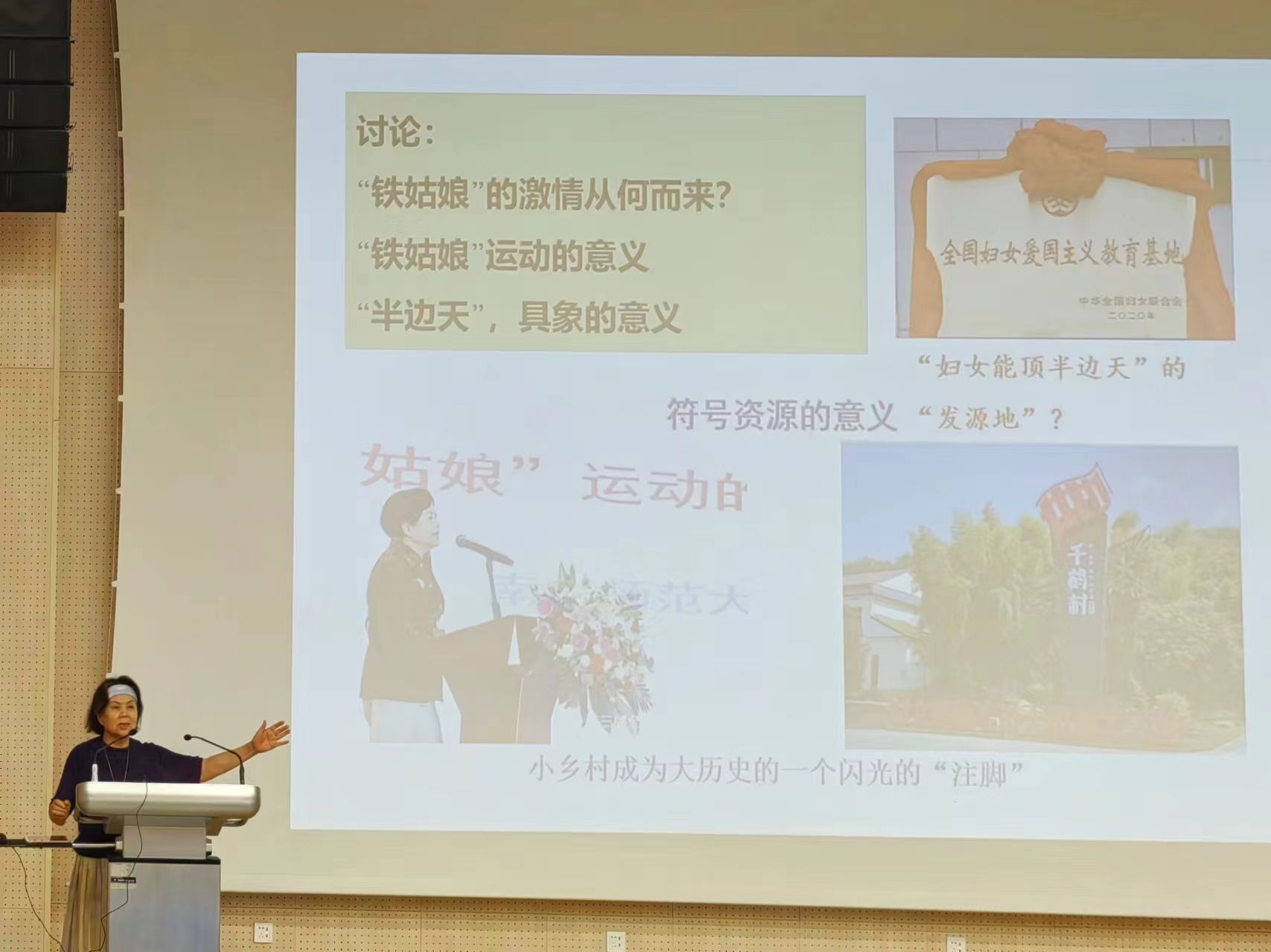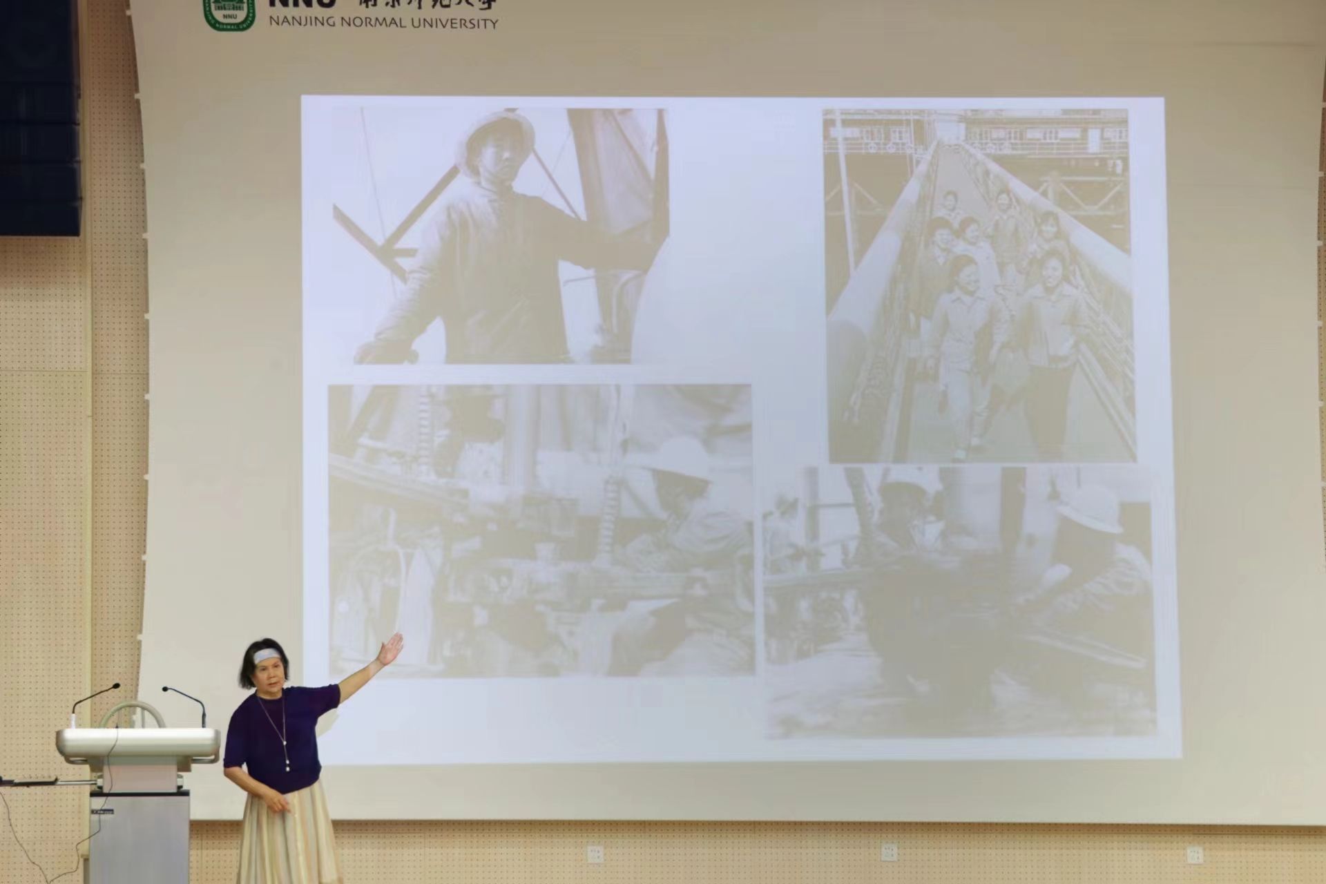 金一虹教授给同学们介绍了自己正在进行的新中国“铁姑娘”口述史研究。“铁姑娘”是新中国成立后新的女性形象,是对旧中国妇女性别规范的颠覆,其中有女子带电作业班、女子掘进队、女子架桥班等等。金老师采访经历上天(高空带电)入地(矿井掘煤)、从海上到洋底(潜海姑娘),采访故事和人物故事生动、感人,让人真切感受到了在那个技术欠发达的时代,女性勇往直前,用自身的力量,为新中国工业领域做出重大贡献。