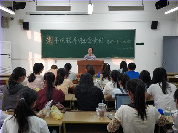在南京师范大学仙林校区学正楼510教室举行了“老年歧视和社会责任”志愿活动交流会。项目活动学生负责人曹笑珊主持了此次志愿活动交流会。