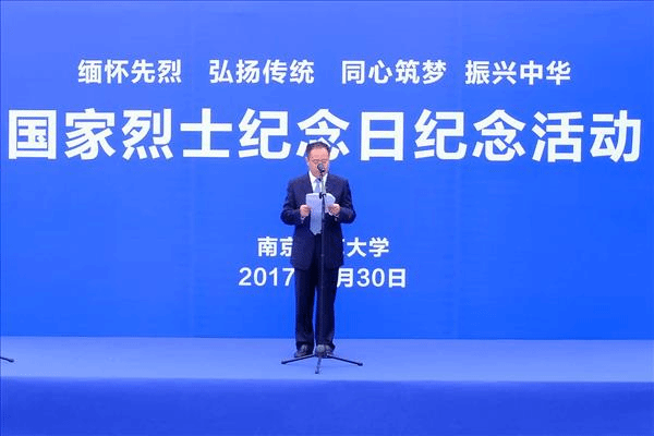 校党委书记胡敏强在随后的讲话中指出作为南师学子,同学们应该秉持着“正德厚生,笃学敏行”的校训,学习先烈们那种奉献、无畏的精神,竭尽全力投身我校建设工作,让学校在国家一流大学的建设上更加完善,加快南师大成为有国际影响力的大学的目标进程。