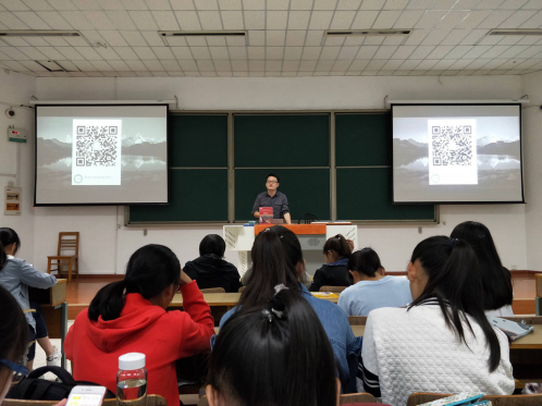 随后,张天野老师进行宣讲。他用幽默的语言向大家详细地介绍了托福考试和GRE,并为同学们学习英语提供了一系列切实可行的建议,他指出同学们要勇于尝试不同的事物,合理规划自己的生活学习,在同学们之中引起强烈反响。