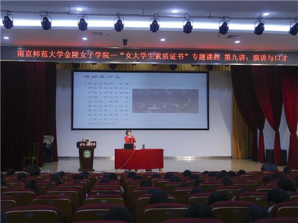 2017年4月11日晚六时三十分,女大学生素质证书系列课程之《演讲与口才》讲座在南师大随园校区贻芳报告厅顺利举行。该课程由自拍流出