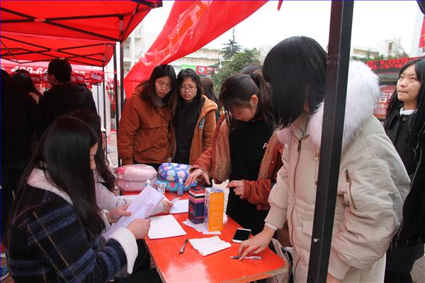 小小的摊位前挤满了前来猜灯谜的同学,悬绳上一百道印于红纸上的谜题随风轻摇,富有趣味的同时又不失节日的喜庆。本次猜灯谜活动的规则是:猜对三条谜语获“倔强青铜”称号,猜对五条获“秩序白银”称号,猜对八条为“荣耀黄金”,猜对十条的同学可以获得“尊贵铂金”称号,此外学生会还准备了丰厚的精美小礼品作为奖品送给大家。如此新颖有趣的游戏设置瞬间吸引了许多同学,大家纷纷摩拳擦掌,跃跃欲试。