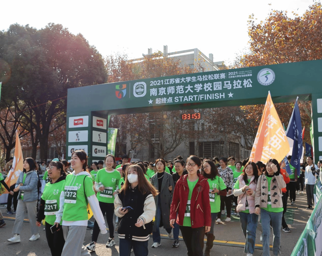 35名同学参加了南京师范大学校园马拉松联赛健身组。天朗气清,每一位运动员精神饱满,青春洋溢。在赛前活动主会场,运动员们进行热身运动,做好充足的准备。