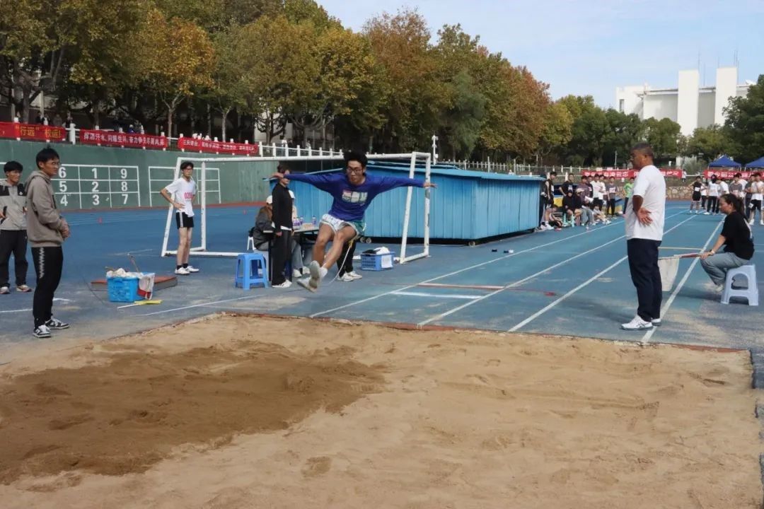院派出了洪培妍、谷依默、李嘉明等运动健儿参赛。选手们屏气凝神,从起跳处飞跃而出,而后稳稳落下。一道道优美的弧度,划过层层沙土,辉煌就铸在他的脚下。在激烈角逐后,李嘉明同学打破了校记录,获得了全校第五的好成绩。