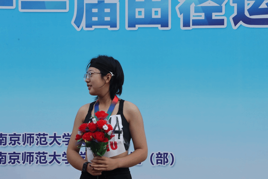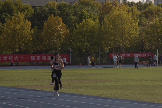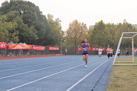 在女子3000米决赛中,伴随着一声枪响,谭万丽同学腾跳奔跑,瞬时疾风划破,如利刃出鞘般闪光,跑出了自己的节奏,从第二圈起就遥遥领先。最终谭万丽同学不负众望,以十一分零三秒的佳绩勇夺桂冠。