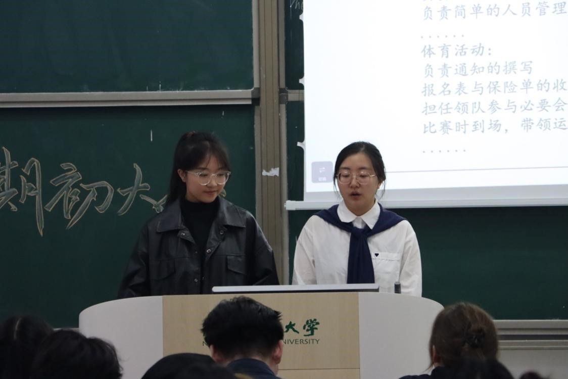 文体部首先进行部门成员介绍,随后以时间顺序展示了本学期丰富多彩的活动,提出了“任务加分制度”以明确干事评分规则。语言风趣幽默又不失严谨细致,秉持着一贯“严肃而活泼”的工作作风。