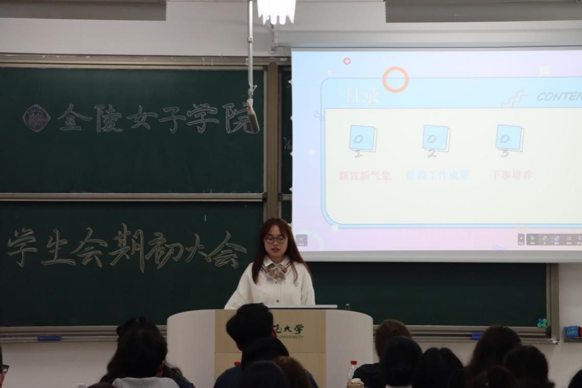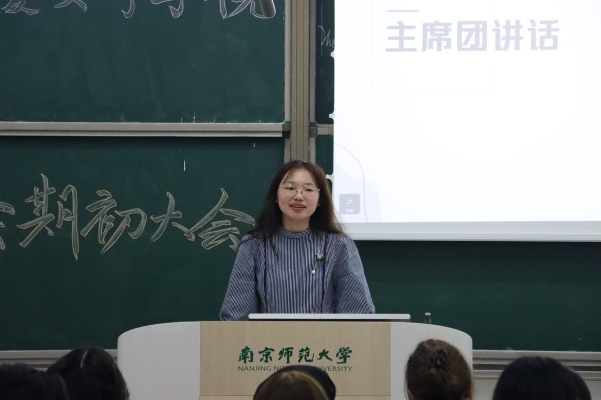 主席团成员李梓萍以自身在学生会的成长经历入题,提出“向下扎根,向上求索”的期望,鼓励同学们积极参与各项工作,在配合与交流中不懈探索、勇于创新、培养能力。
