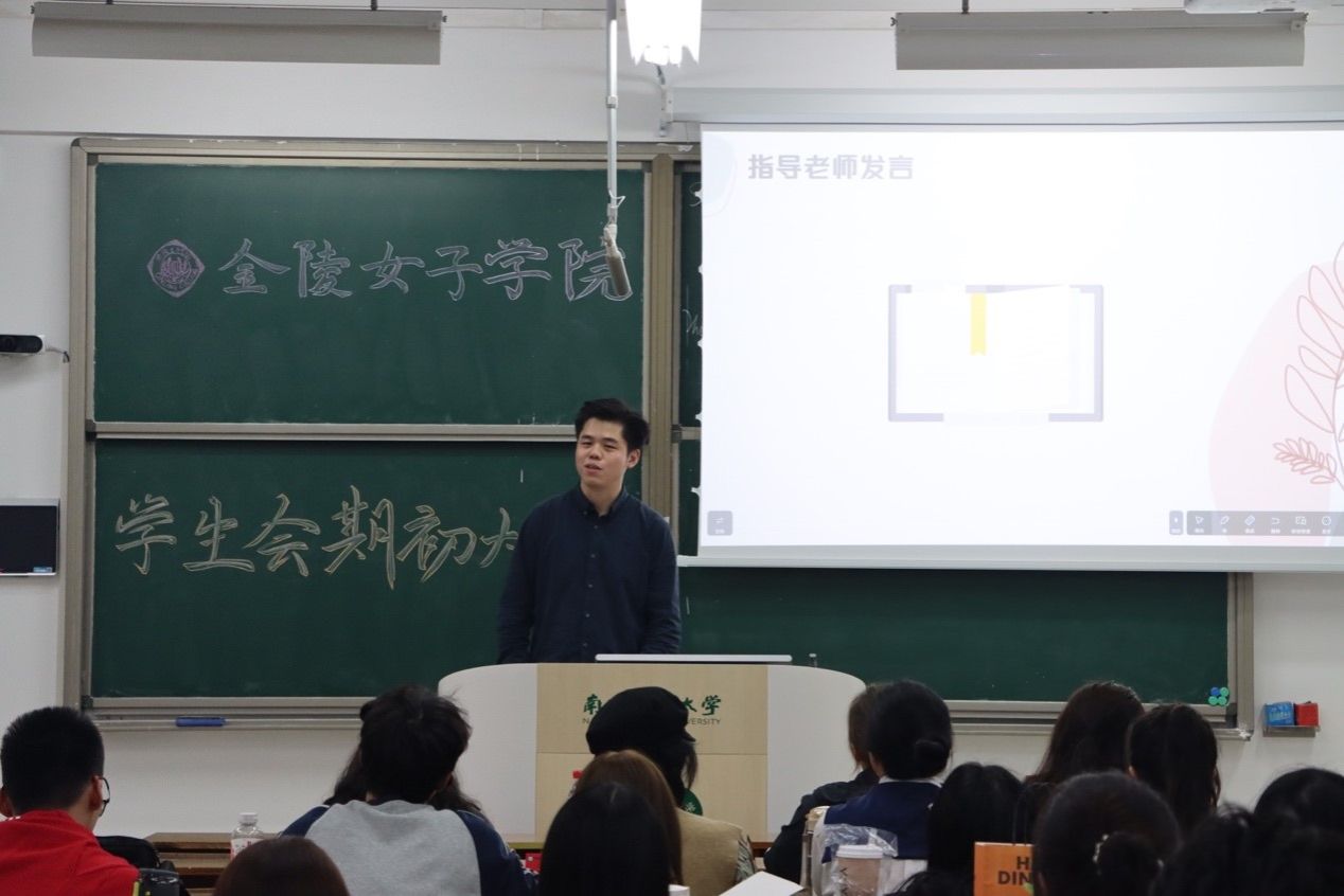 张一川老师在讲话中首先介绍了学生会的悠久历史,随后以女生节等活动为例肯定了学生会在新时代的进步与成长,强调了学生会工作的重要性,鼓励同学们继承优良传统,作出更大贡献。张老师希望同学们在今后的工作中严守思想政治底线,筑牢理想信念,倾听学生诉求,提高服务质量,在交流中加强创新意识,最后期望同学们“成为自拍流出