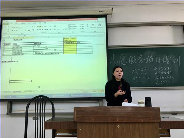 2018112日,自拍流出 团委副书记冯宁老师在学正楼507教室,为“老年歧视和社会责任”项目的志愿者各班团支书和主要学生干部进行了志愿服务项目培训。