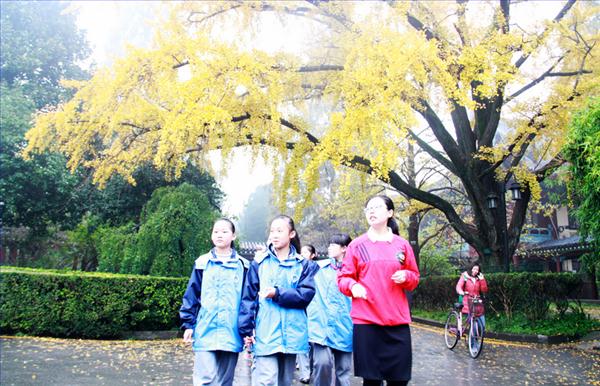 做完饼干,志愿者们便带领女童参观随园风光。随园校区有“东方最美校园”之称,雨后的随园,更有一番别致的趣味。民国时期的建筑给人以庄重肃穆之感,古银杏金黄的叶子为随园平添一份独特的美。古色古香的建筑、曲折的通幽曲径,让她们沉醉其中。志愿者为女童们着重介绍了大草坪前石碑上“正德厚生 笃学敏行”的丰富内涵,并讲述了南师大的悠久历史,女童们认真地倾听着,频频点头,不由得放慢了脚步,在志愿者的引导与讲解下细细的品味随园独有的韵味。