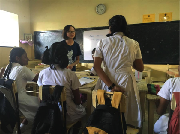 王雯平常主要的工作是在斯里兰卡科伦坡的一所女子学校教英语口语。但是只身一人又没有支教经验,加上人生地不熟,王雯还是有些忐忑。好在学校的老师们热心地帮助分班、提供饮料,其他志愿者也乐于和她分享经验,很快她就融入了新的环境。