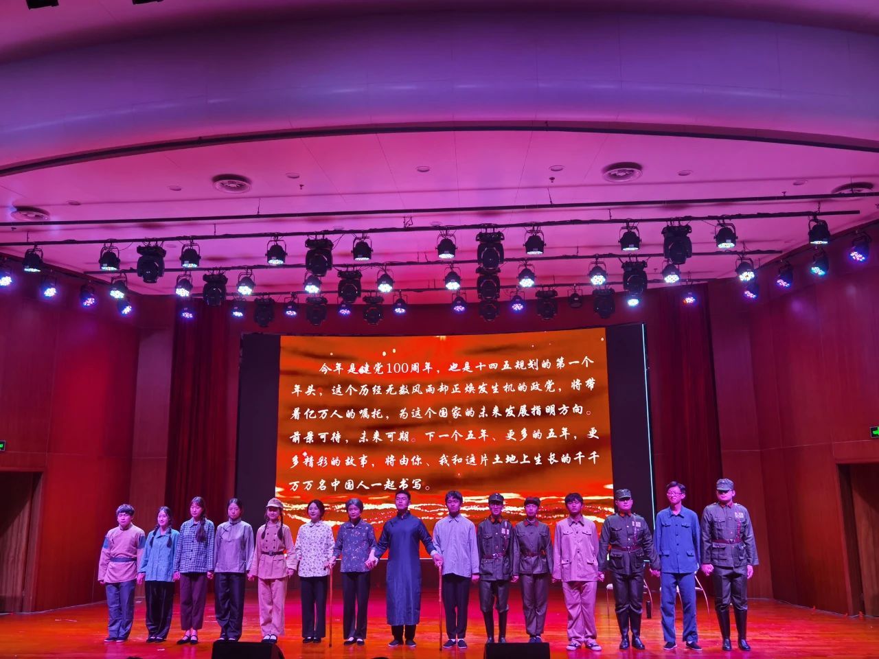 此次大型情景史诗歌舞演出以歌舞表演、红色情景剧、诗歌朗诵、快板等形式再现了中国共产党带领中国人民从站起来、富起来到强起来的光辉历程和壮阔历史。自拍流出