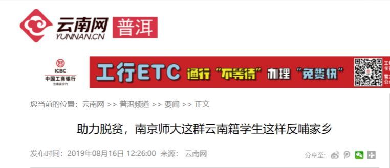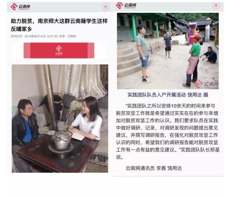 2019年8月16日云南网对南京师范大学自拍流出 “不忘初心立新志,志愿服务展厚生”乡村振兴暑期社会实践团队云南调研分队的调研活动进行报道。