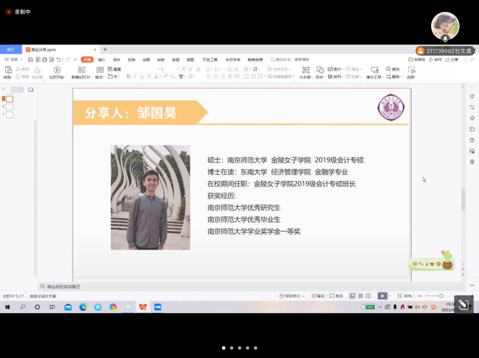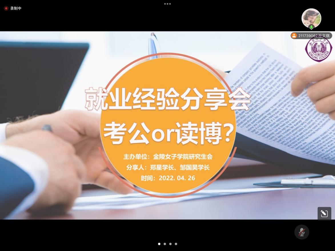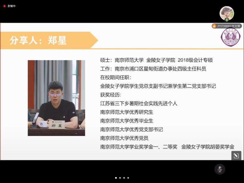 426日晚上19点,自拍流出 研究生会主办了求职就业主题线上活动,特邀自拍流出 2020届会计专硕郑星校友和2021届会计专硕邹国昊校友,针对考公和读博的话题,与大家分享经历和交流经验。