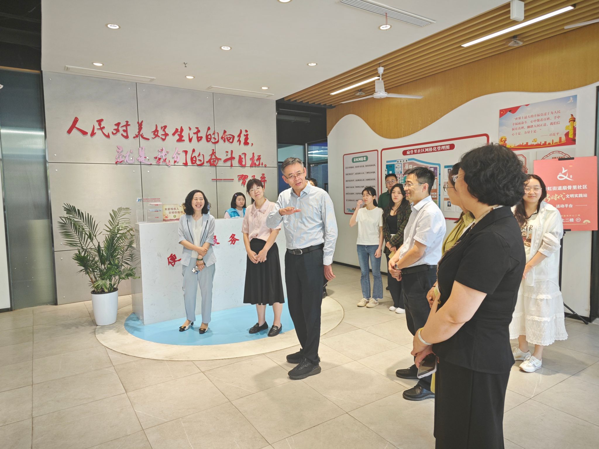 院家政学科的发展情况,并表达此次带领家政学研究生进入社区调研是为了了解更多家政进社区的真实情况,把好的做法总结提升,形成可复制可推广的经验,让高校的研究真正能转化成政府的决策,解决老百姓的急难愁盼问题。