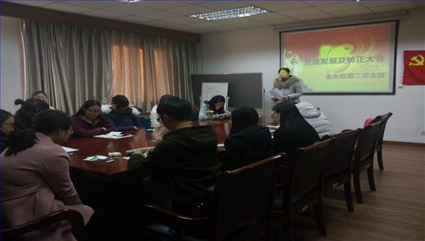 院研究生第二党支部于随园校区逸夫楼401召开了党员发展及转正大会,旨在吸纳优秀同学壮大研究生党员队伍,为支部将来的发展打下坚实的基础。与会成员有正式党员10名,预备党员5名。本次大会由第二党支部书记秦颖同志主持,主要讨论姜慎、刘晶晶和刘雨欣三位发展预备党员以及张芸、吴海燕两位同志预备党员转正问题。