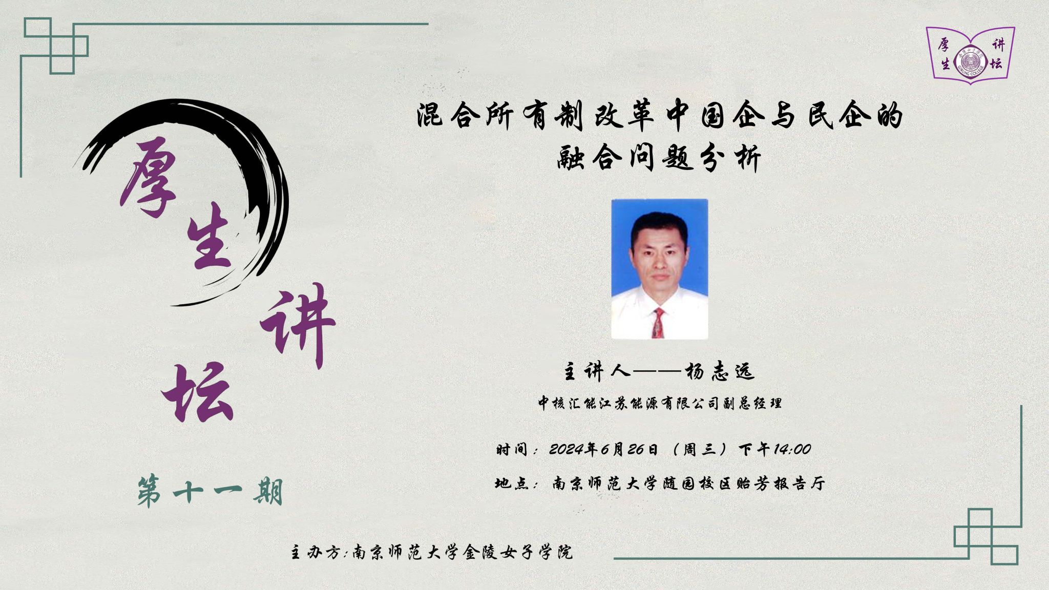 在贻芳报告厅成功举办了第十一期厚生讲坛。此次讲坛的主题是“混合所有制改革中国企与民企的融合问题分析”,由中核汇能江苏能源有限公司副总经理杨志远主讲。自拍流出