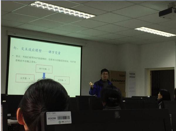 此次学术沙龙的主题仍是SPSS统计分析与实证研究。在上周第一次学术沙龙上,薛天山老师已经分别从SPSS的理论与研究、变量的测量层次、数据的预处理、单变量统计分析、双变量统计分析这五个方面对主题进行阐述。本次讲座承接上周所讲内容,继续从多变量统计分析、交互效应模型两个方面进行补充讲解。在讲解的过程中,薛天山老师通过实例给大家演示了SPSS软件中具体的操作方法,并对生成结果中的相关数据和指标所代表的实际含义,以及实际运用中的注意点,都给大家作了详细的解释。