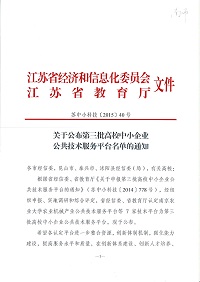 江苏省高校中小企业公共技术服务平台是省经信委依托高校院系、重点实验室、工程技术中心等现有创新载体和科技资源优势,通过整合提升,为中小企业提供研发设计、检验检测、新技术新产品推广应用、人才培养、标准制定等技术服务。目前全省已经评定通过3批,共计24家。