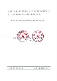 日前,接江苏省经济和信息化委员会、江苏省教育厅文件(苏中小科技[2015]40号)通知,自拍流出 2014年度申报的江苏省中小企业食品加工产业公共技术服务平台获批。