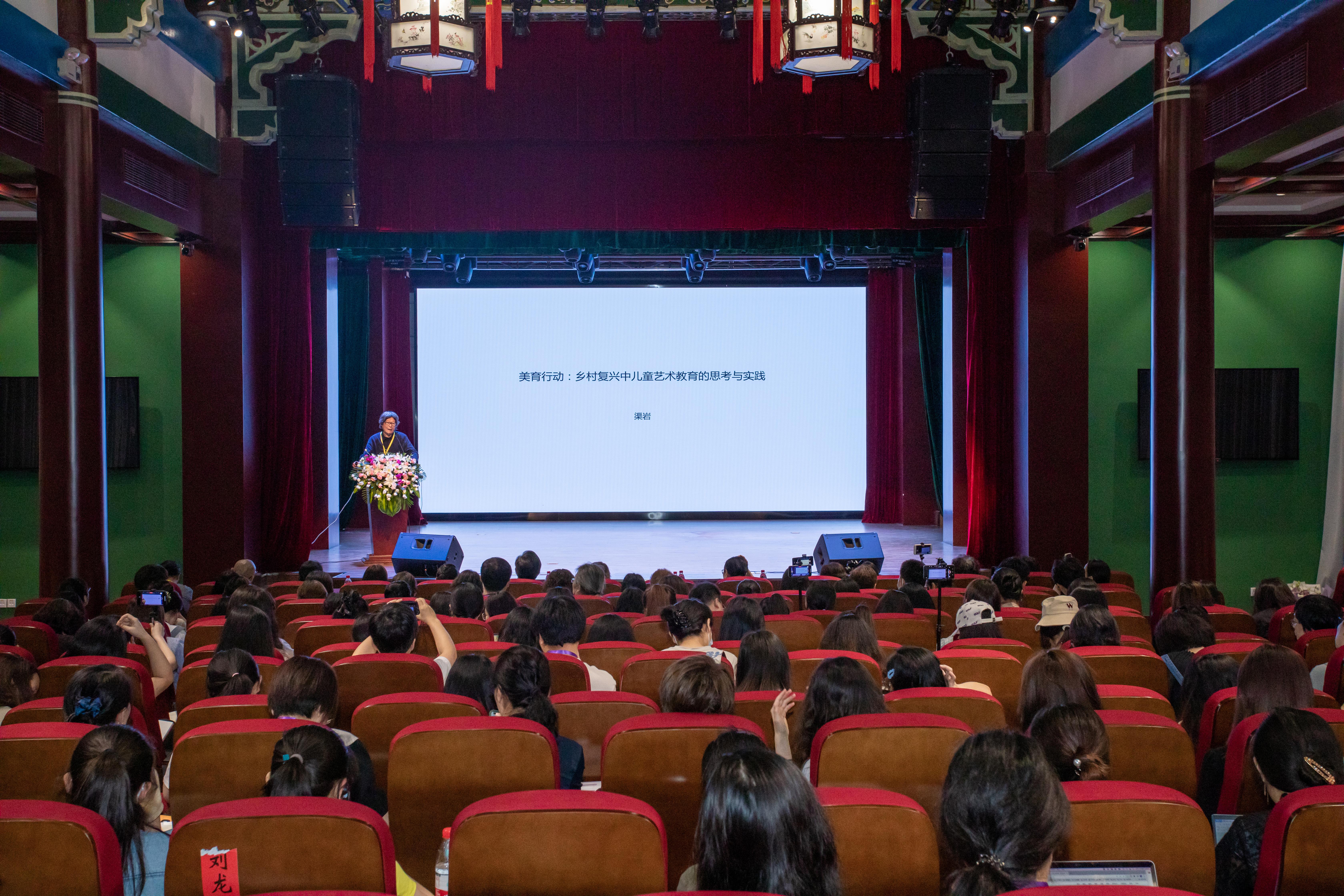 主旨报告二由渠岩教授以《美育行动:乡村复兴中儿童艺术教育的思考与实践》为题进行了报告。渠岩教授指出,中国的城市与乡村面临着全球化发展链条上的现代化困局与自身文化资源被消耗殆尽的双重困境,而艺术乡建提供了一种思路,即通过艺术重建乡村的“情感”共同体,促进人与自然、人与社会的和谐相处,以实现乡村文明的复兴。渠教授还分享了艺术介入乡村时应当采取的策略、路径以及乡村建设中的儿童艺术助学计划。