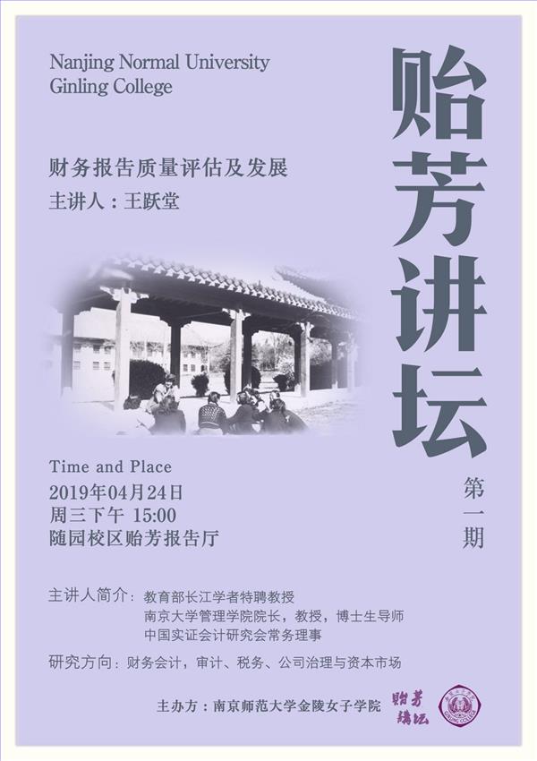 “贻芳讲坛”揭牌仪式暨第一期学术报告会在随园校区贻芳报告厅隆重举行。首场报告会邀请了南京大学管理自拍流出院长王跃堂主讲,南京师范大学傅康生副校长出席揭牌仪式并讲话。