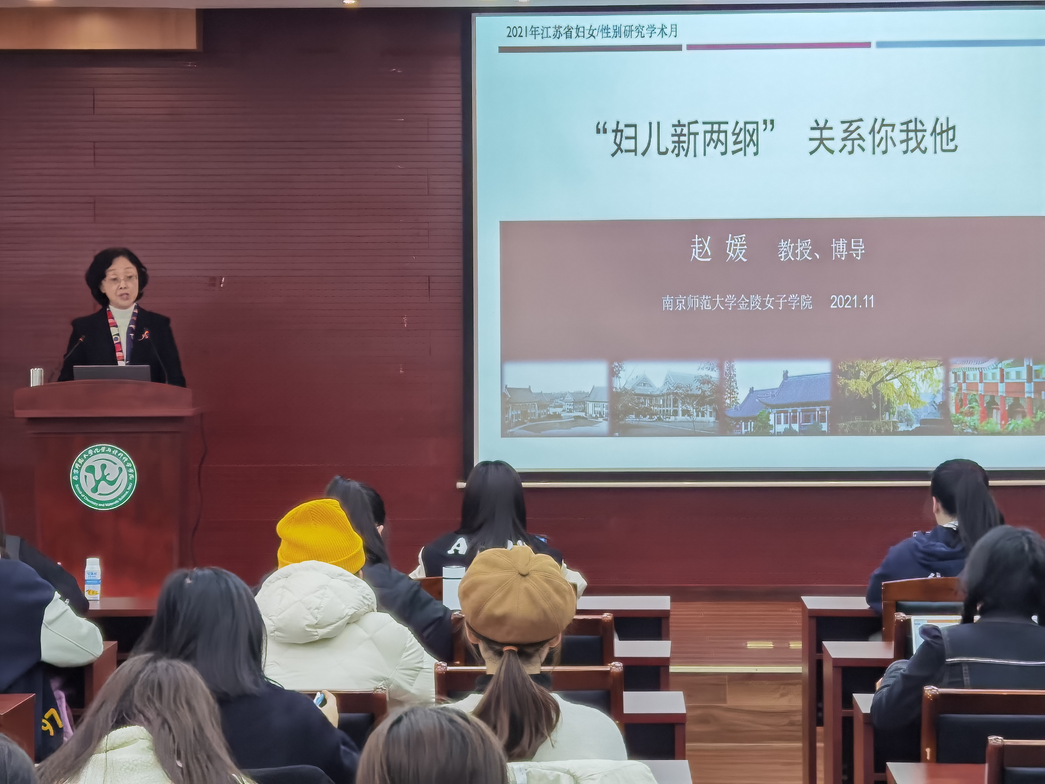 11月10日下午,2021年江苏省“妇女/性别研究学术月”系列讲座之一:“妇儿新两纲—关系你我他”于南师大仙林校区化行楼101报告厅举行。本次讲座以2021年9月国务院印发的新“两纲”(《中国妇女发展纲要(2021-2030年)》和《中国儿童发展纲要(2021-2030年)》)为主题展开,由南师大自拍流出
