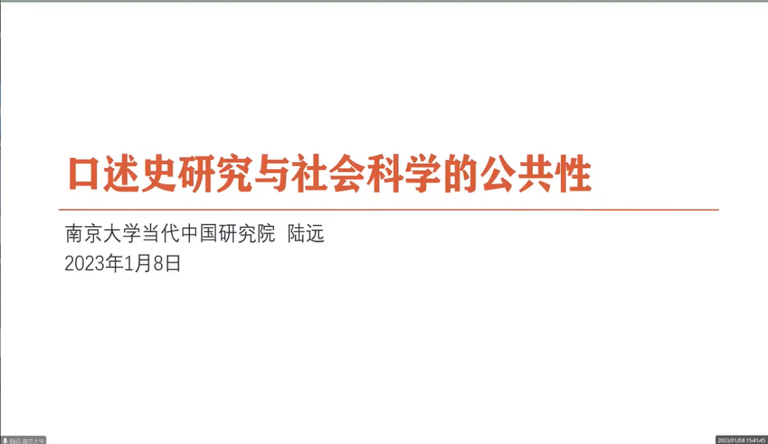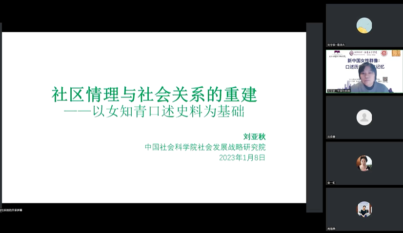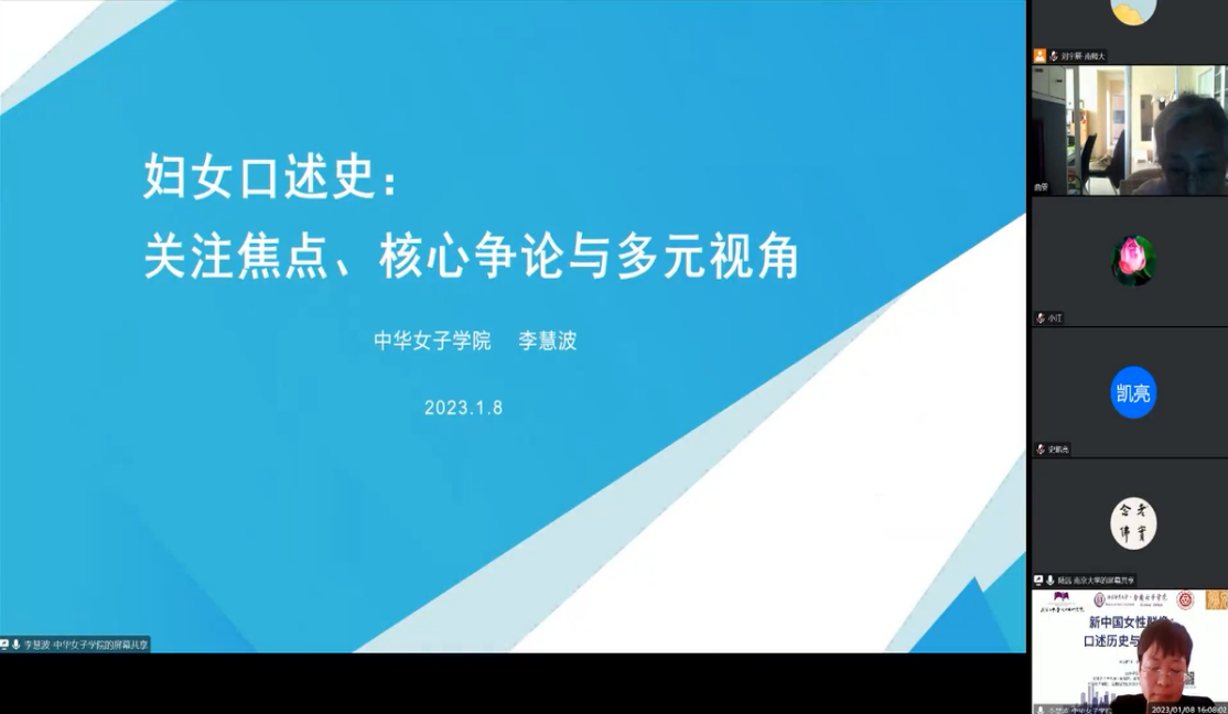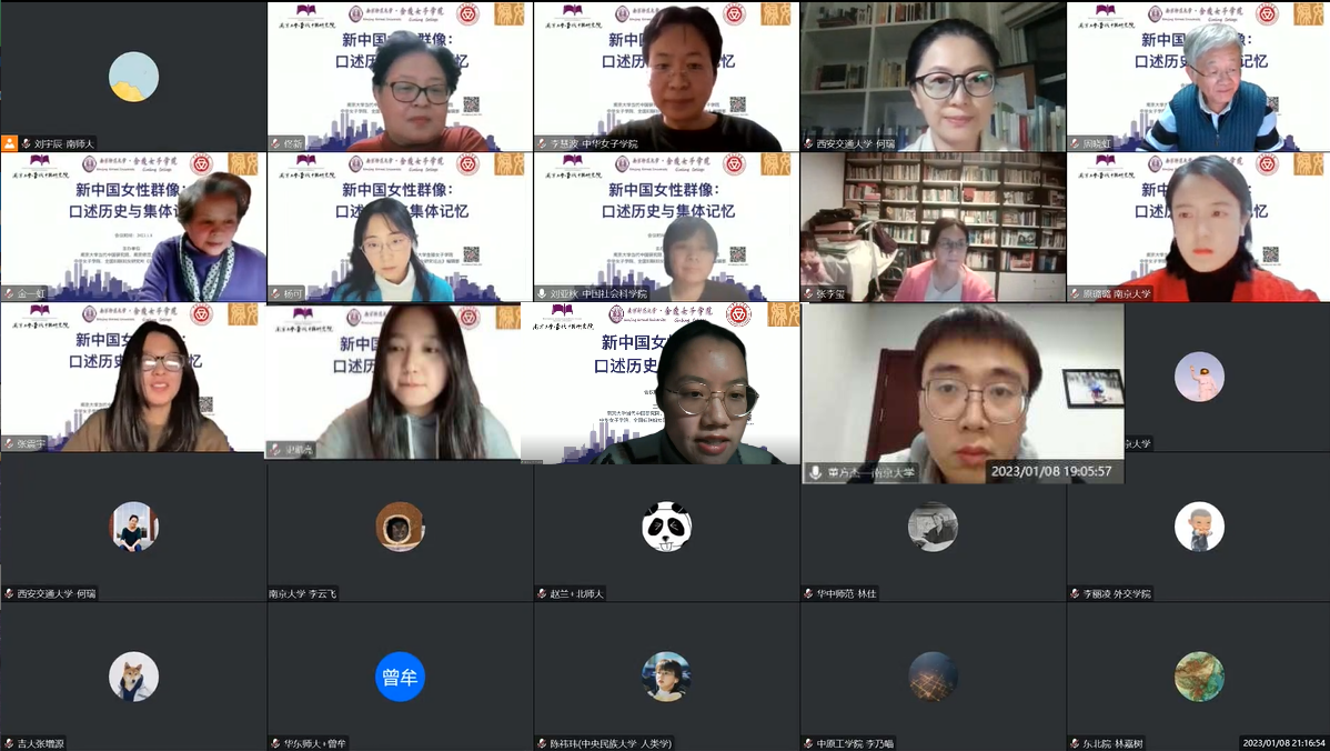 2023年1月8日,由南京师范大学自拍流出 、南京大学当代中国研究院、中华女子自拍流出与《妇女研究论丛》编辑部共同主办的“新中国女性群像:口述历史与集体记忆”工作坊在线上顺利举行。