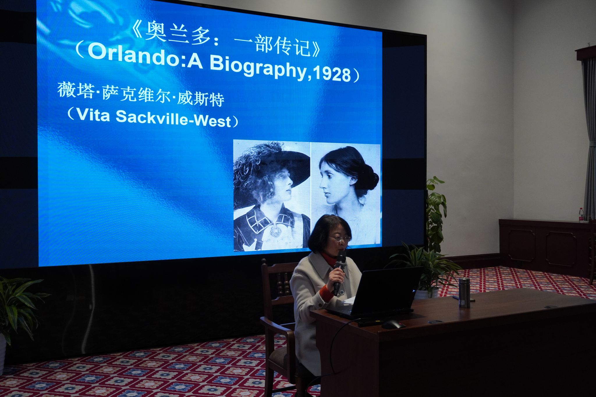 随后杨莉馨老师指出其与《一间自己的房间》的互文之处。《一间自己的房间》是伍尔夫的随笔,记录了伍尔夫对女性作家处境的不公现象的反思,并提出雌雄同体是最适合创作的精神状态。这与奥兰多的双性视野不谋而合。《奥兰多》故事结尾的笔尖也恰巧落在了《一间自己的房间》出版的年份。杨莉馨老师敏锐地提出《奥兰多》是一次对浮士德式自我实现的女性主义修正的文学实践。通过地域跨界、种族藩篱的跨越和性别跨界,伍尔夫虚构了一个女性的浮士德在异质空间中深入“生活”、探究“真相”的求索过程,与《一间自己的房间》中在牛桥草坪上思索女性创作的伍尔夫遥相呼应。杨莉馨教授以赫麦尔妮·李在《伍尔夫传》中的话总结了两本书的相似之处,并深刻地向我们展示了女性创作者的不易处境以及如何通过文学实现自我解放。