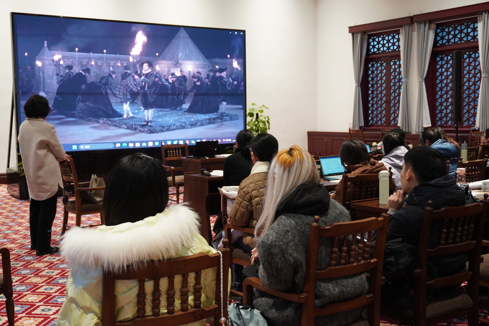 讲座最后杨莉馨老师播放了《奥兰多》电影片段,使同学们更加具象化地理解小说的“双性视野”,同时也引发了诸多思考。