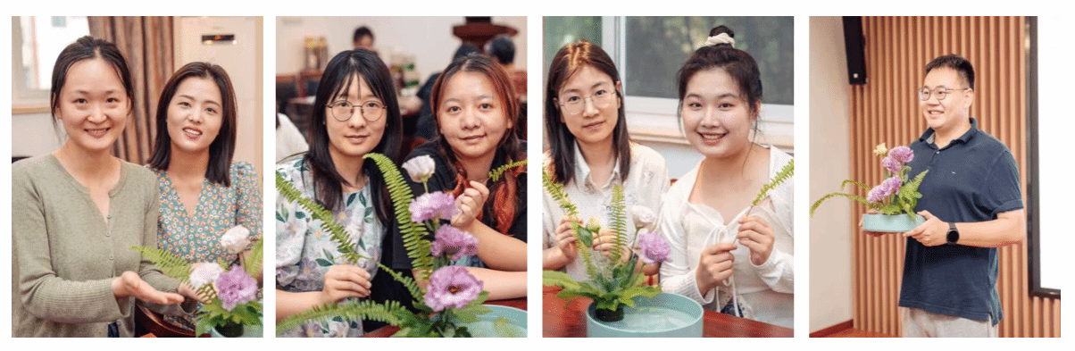 花道之美,叶间藏诗,花间映梦,韵动心灵。它用花卉的芬芳诉说着自然的韵律,用枝叶的交错编织着生命的交响,用色彩的搭配绘制着心灵的图景。本次活动,师生们不仅学习了如何欣赏和创作花道作品,还让平时忙碌的自己得到了心灵放松和滋养。