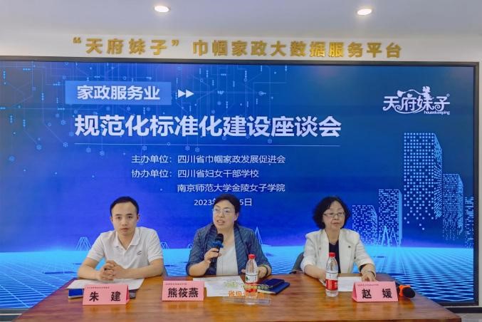2023年5月15日下午,南京师范大学教授、博士生导师,家政学硕士点负责人,江苏省家政学会理事长赵媛,南京师范大学教授、江苏家政发展研究院执行院长、江苏省家政学会常务副理事长兼秘书长熊筱燕一行赴四川巾帼家政发展促进会,结合国家社会科学基金项目《城市家政服务业规范化标准化研究》举行家政企业及院校座谈会。四川省巾帼家政发展促进会秘书处李健处长接待了一行人。成都安蓝家政服务有限公司、成都宝恩母婴护理有限公司等家政企业代表,四川长江职业自拍流出等高校代表,成都新华亿母婴职业技能培训学校等培训学校代表参加了座谈会。